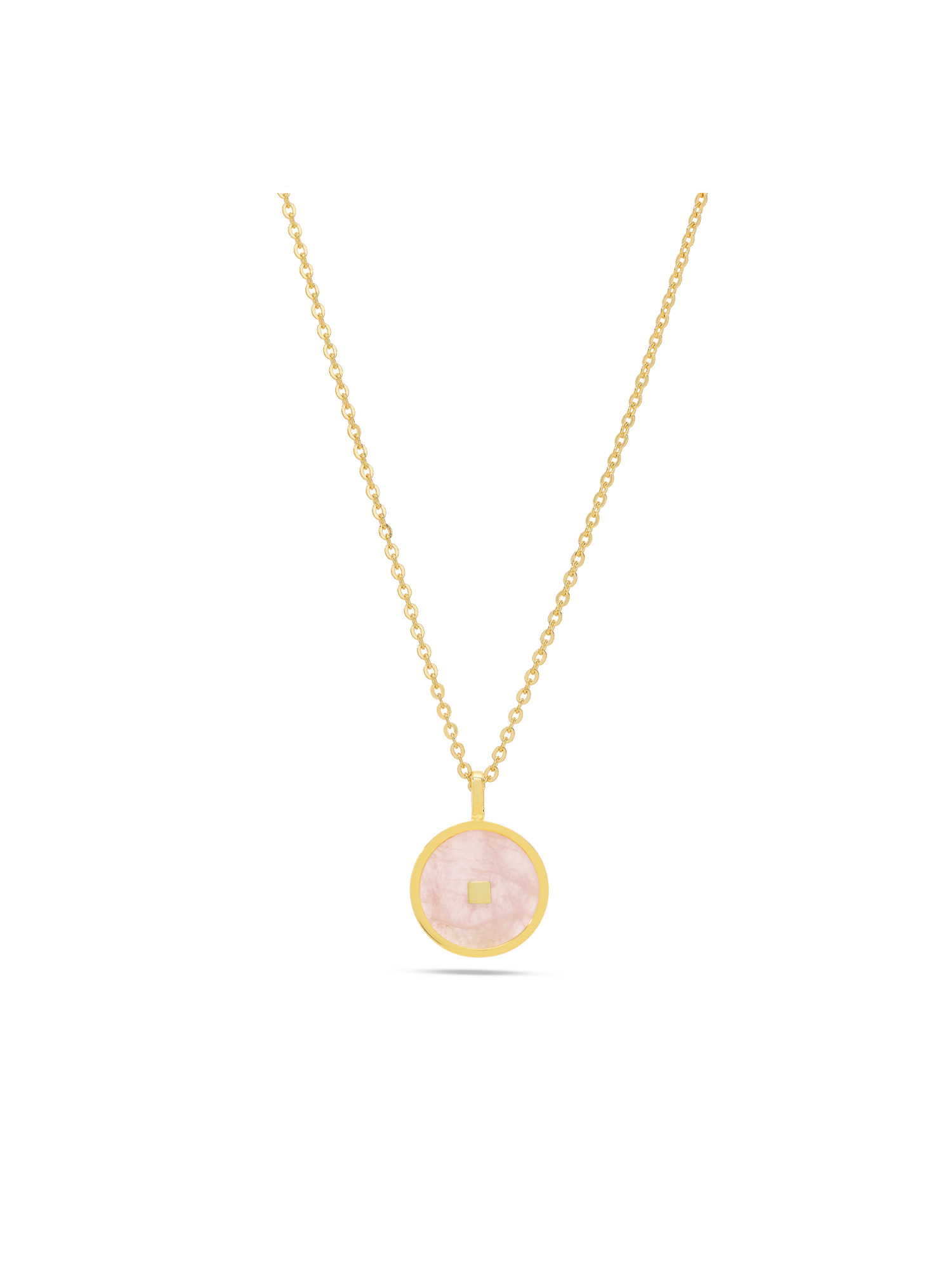 Collar colgante, Bañado en oro, Cuarzo rosa artificial, Rosado, Círculo, Artificial, Color dorado, longitud del colgante: 1.6 cm, ancho colgante: 1.2 cm, 1.24 g