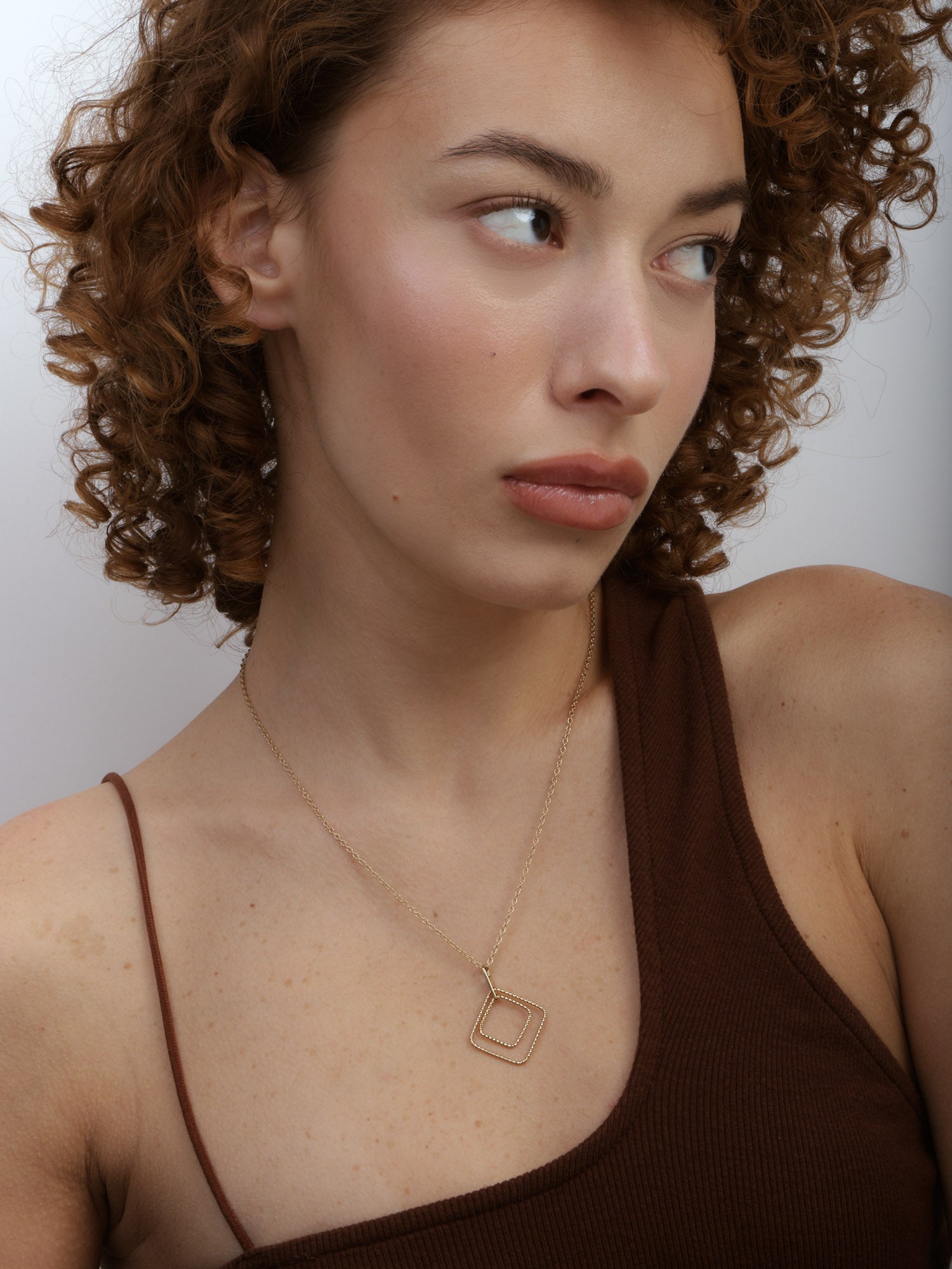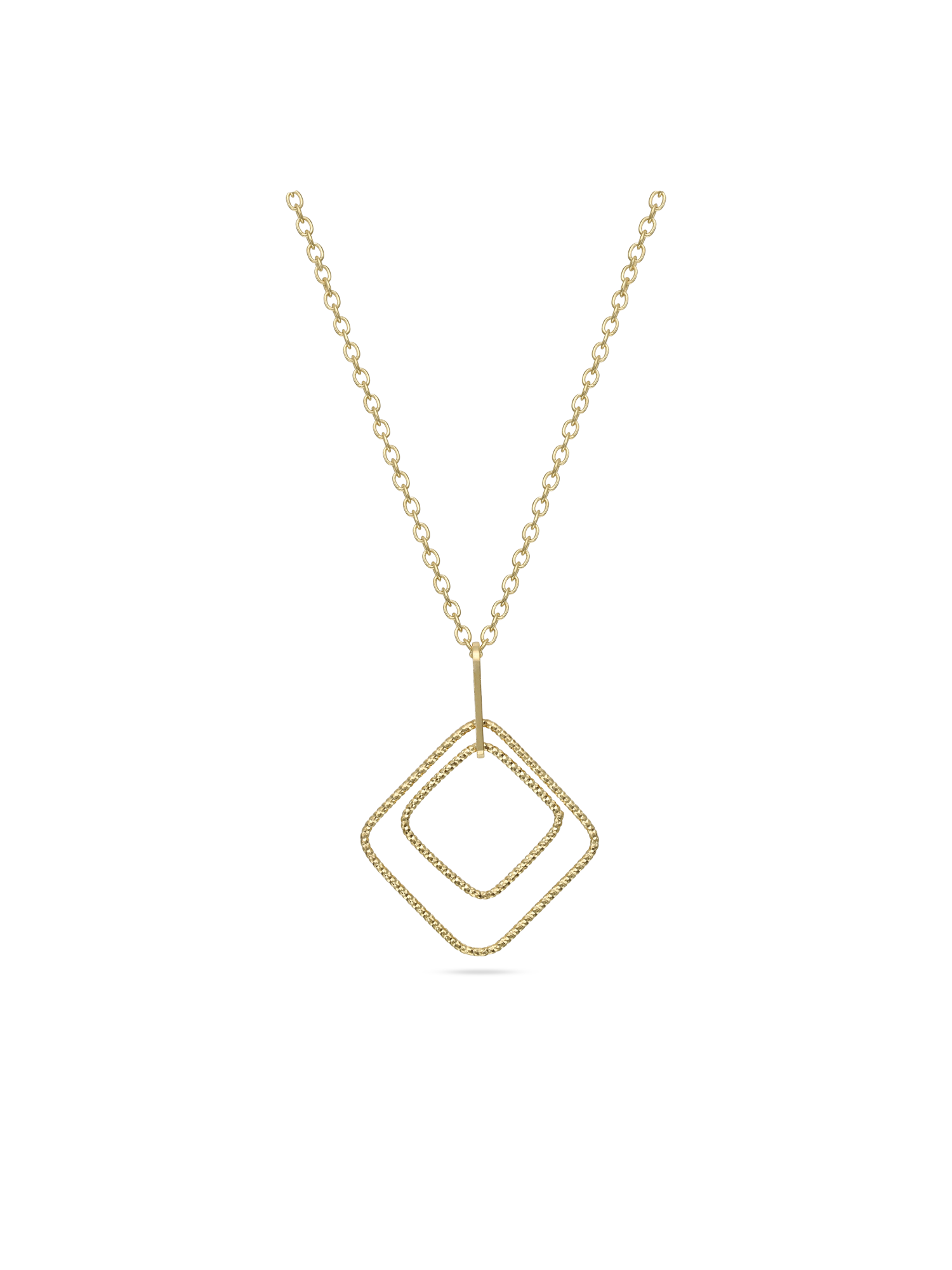 Collar colgante, Bañado en oro, Sin piedra, Sin color, Cuadrado, Color dorado, longitud del colgante: 3.3 cm, ancho colgante: 2.5 cm, 3.13 g