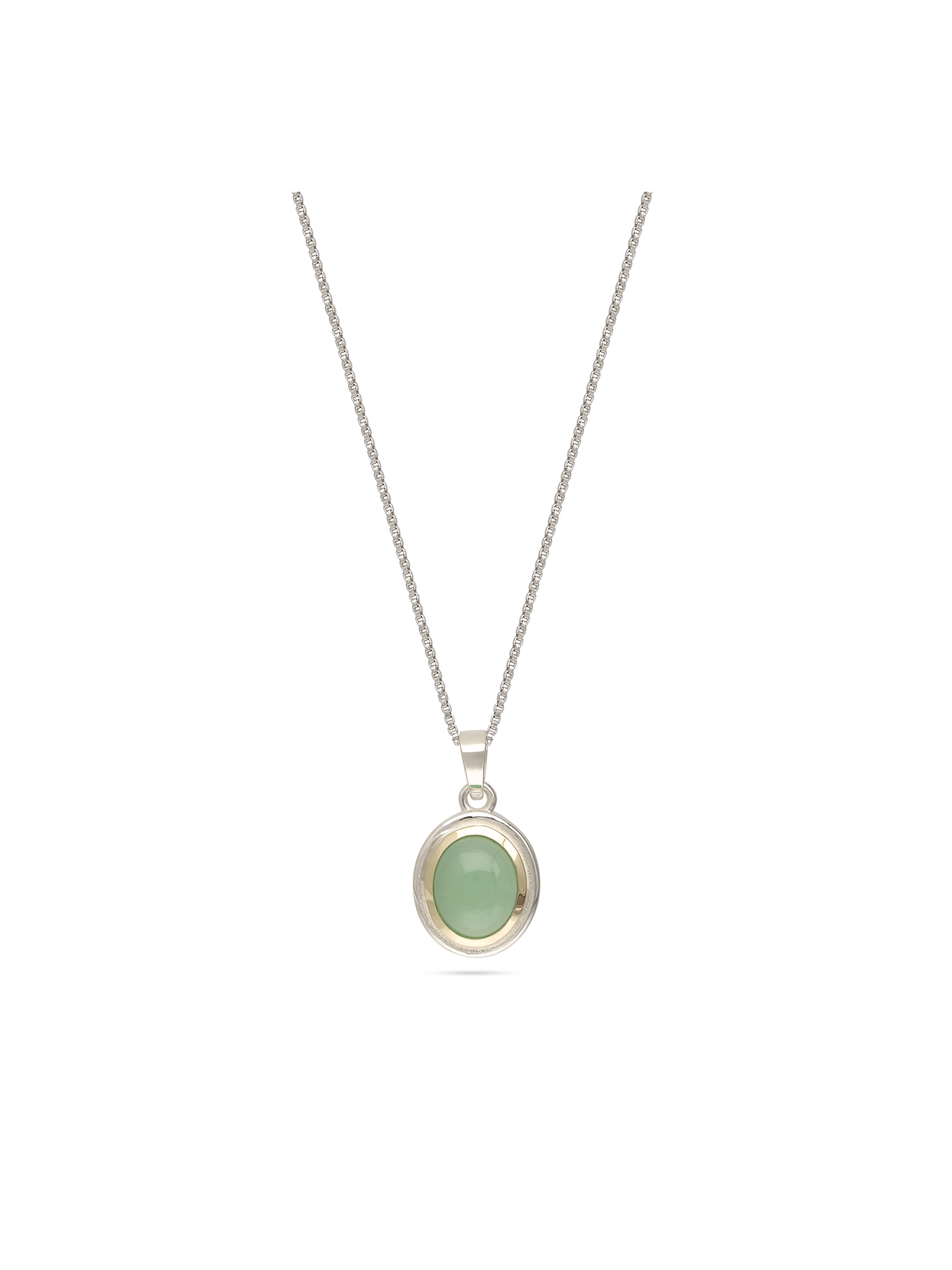 Collar colgante, Plata 925 con oro 9k, Calcedonia artificial, Verde, Círculo, Artificial, DOS TONOS, longitud del colgante: 2.2 cm, ancho colgante: 1.2 cm, 4.20 g