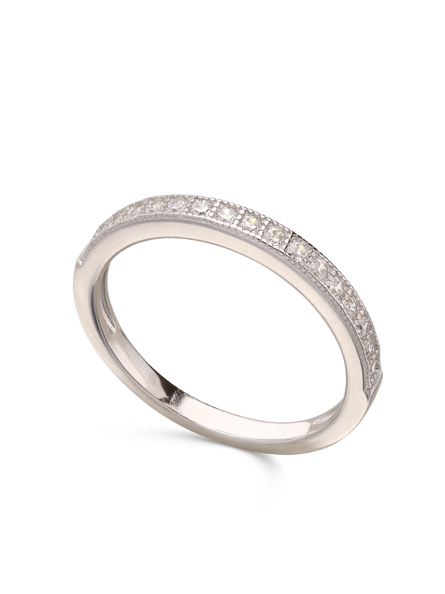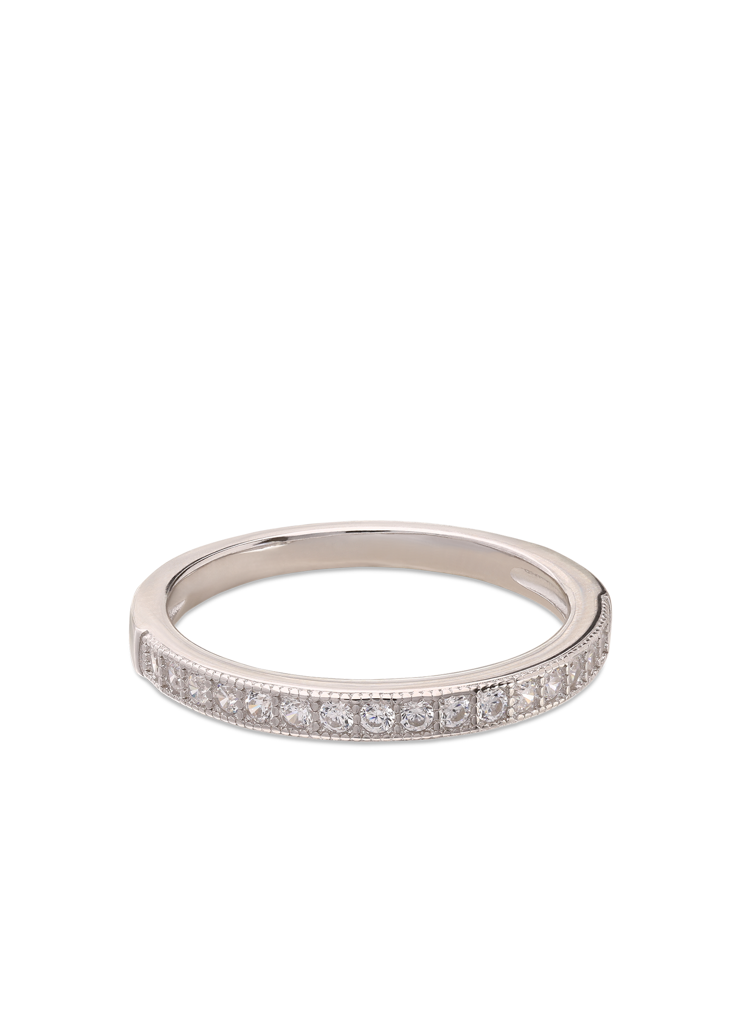 Anillo Delicado, Plata 925 bañada en rodio, Zirconia cúbica artificial, Claro, Círculo, Artificial, Color plateado, 2.30 g