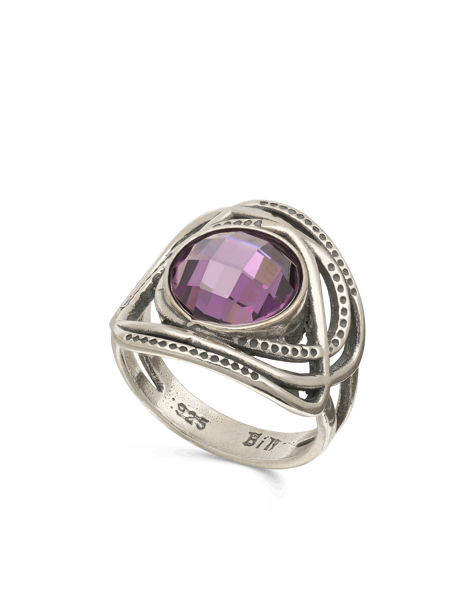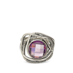 Anillo de Declaración, Plata de Ley 925, Zirconia cúbica artificial, Violeta, Círculo, Artificial, Color plateado, altura del anillo: 1.5 cm, 4.60 g