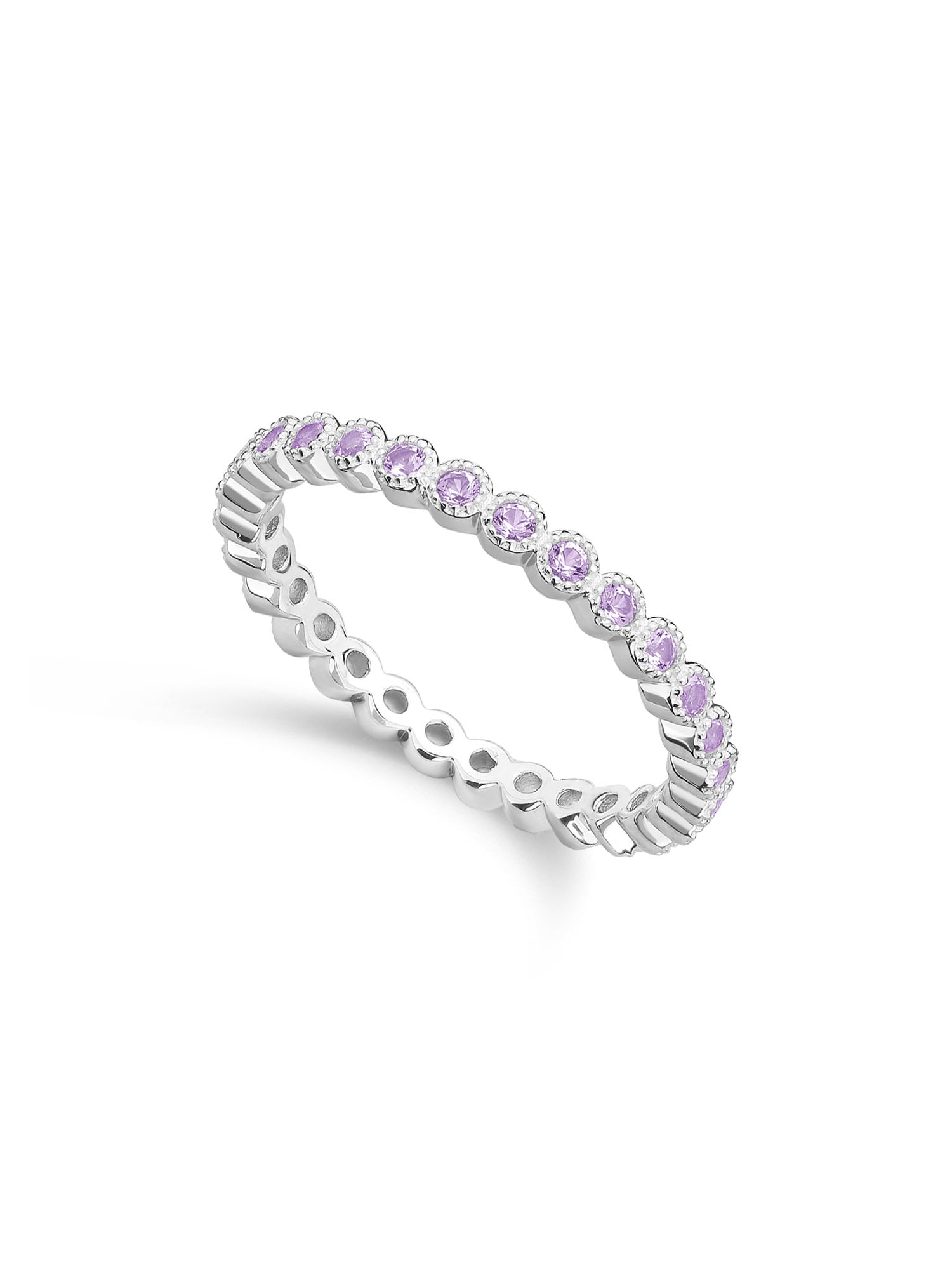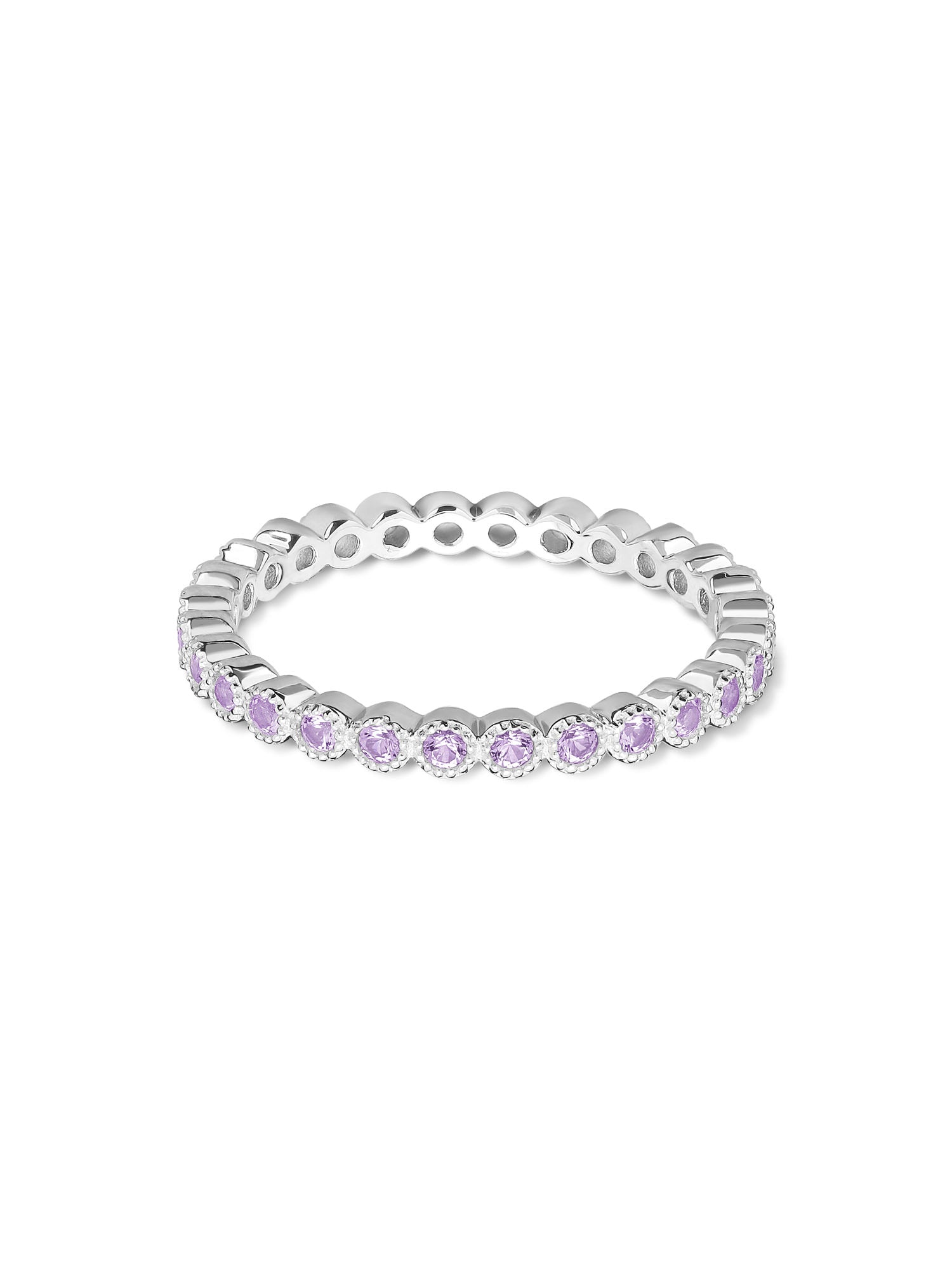 Anillo Delicado, Plata 925 bañada en rodio, Zirconia cúbica artificial, Violeta, Círculo, Artificial, Color plateado, 1.61 g