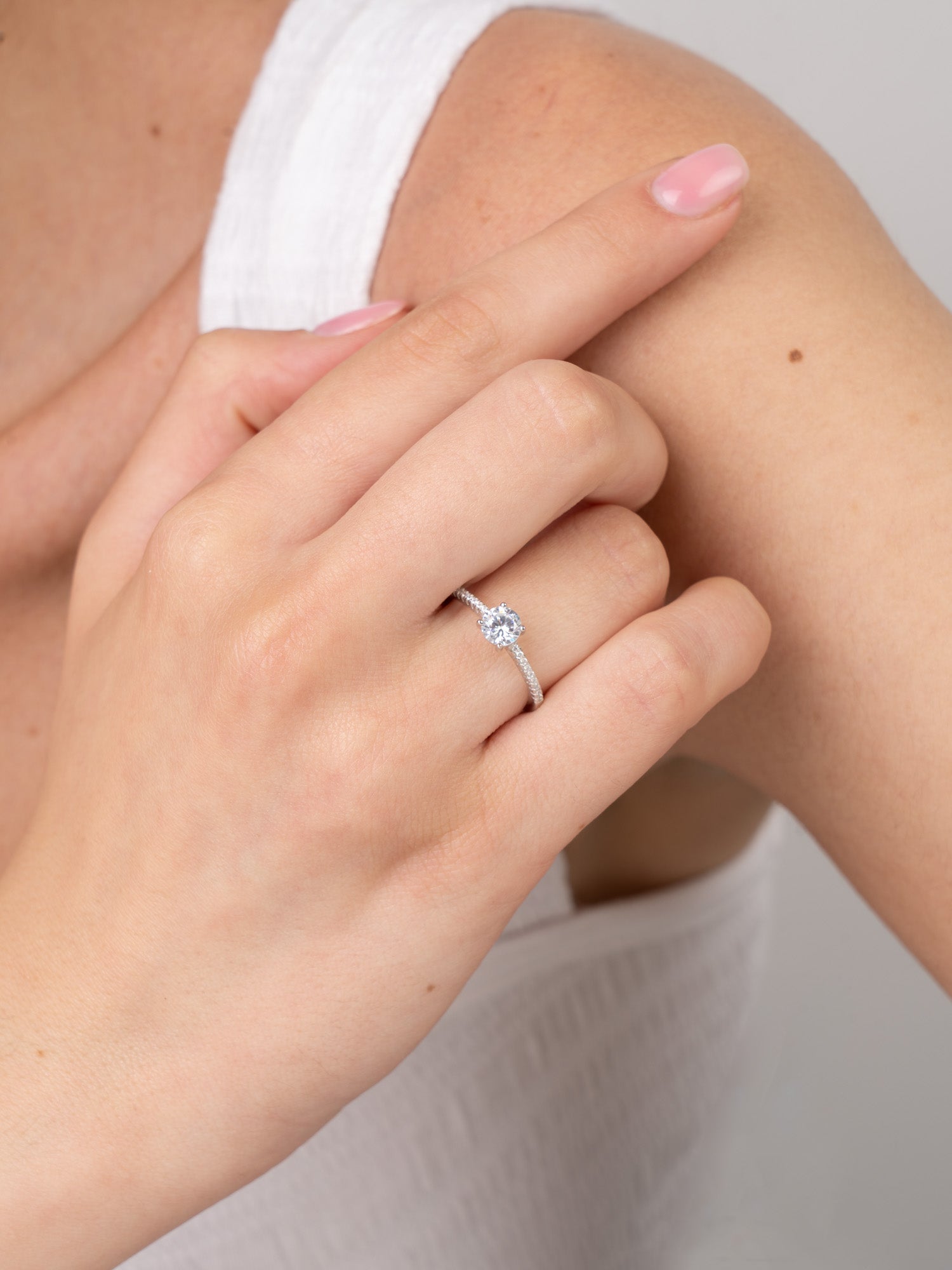 Anillo Delicado, Plata de Ley 925, Zirconia cúbica artificial