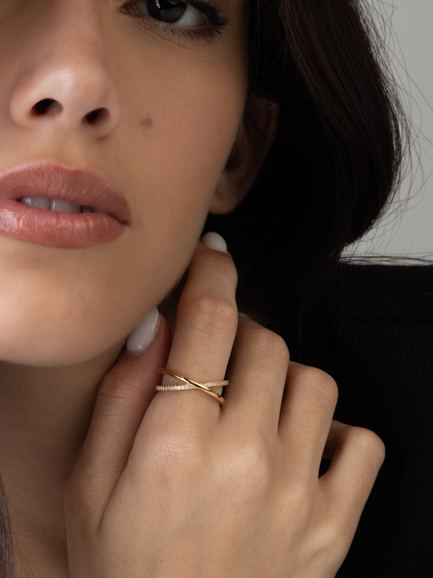 Anillo Delicado, Bañado en oro, Zirconia cúbica artificial