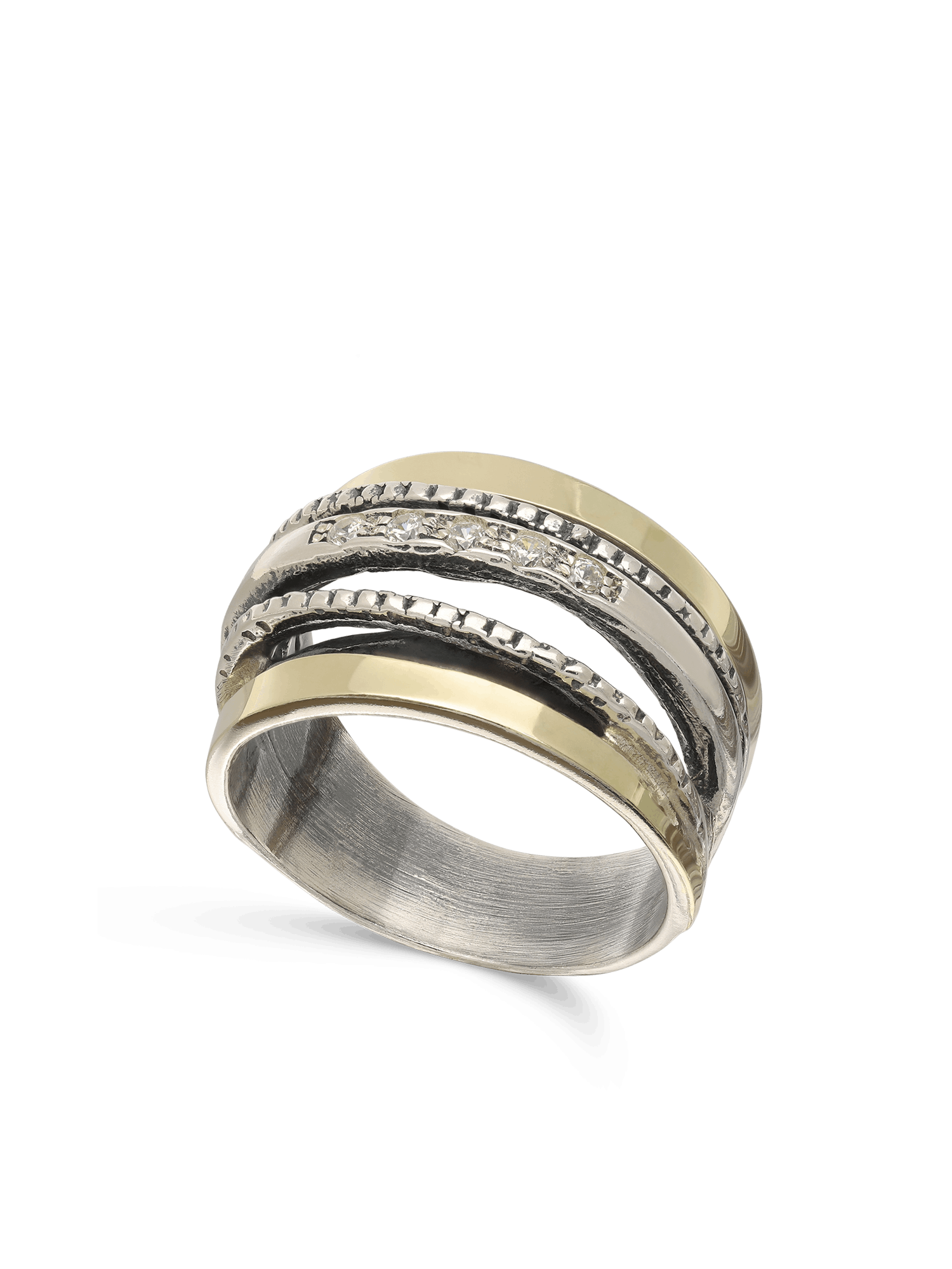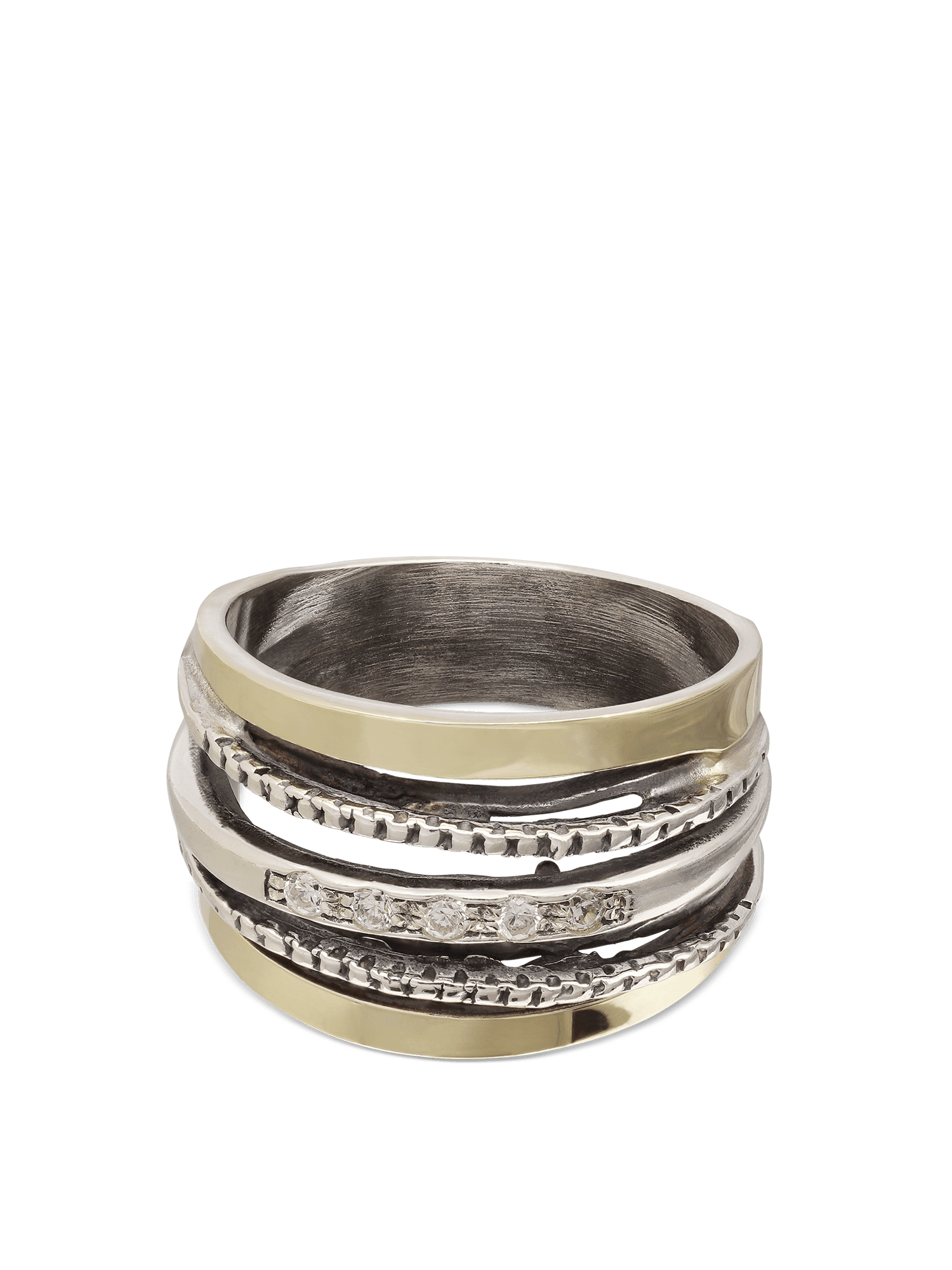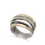 Anillo de Declaración, Plata de Ley 925, Plata 925 con oro 9k, Zirconia cúbica artificial, Claro, Círculo, Artificial, DOS TONOS, altura del anillo: 1.3 cm, 6.70 g