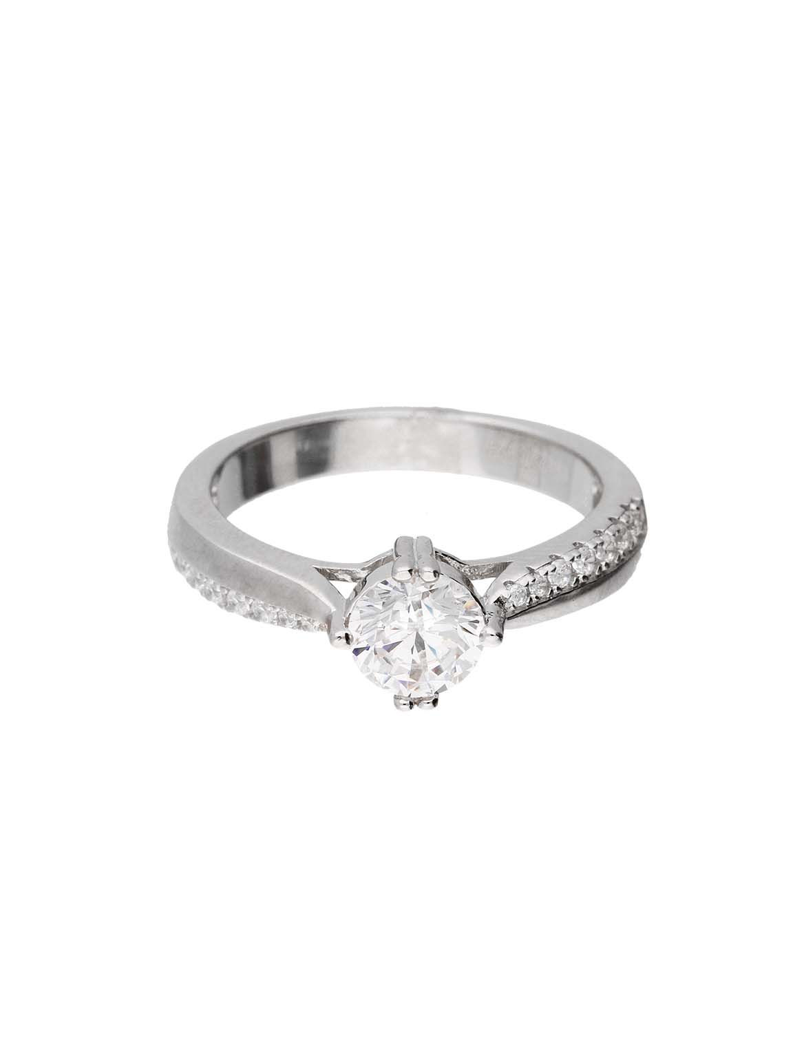 Anillo Delicado, Plata 925 bañada en rodio, Zirconia cúbica artificial, Claro, Círculo, Color plateado, 3.50 g