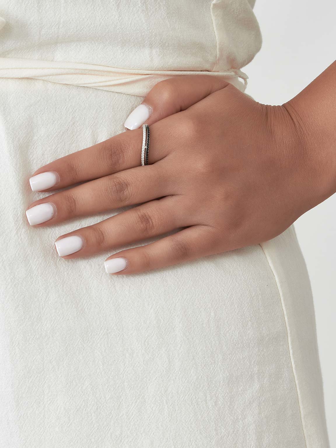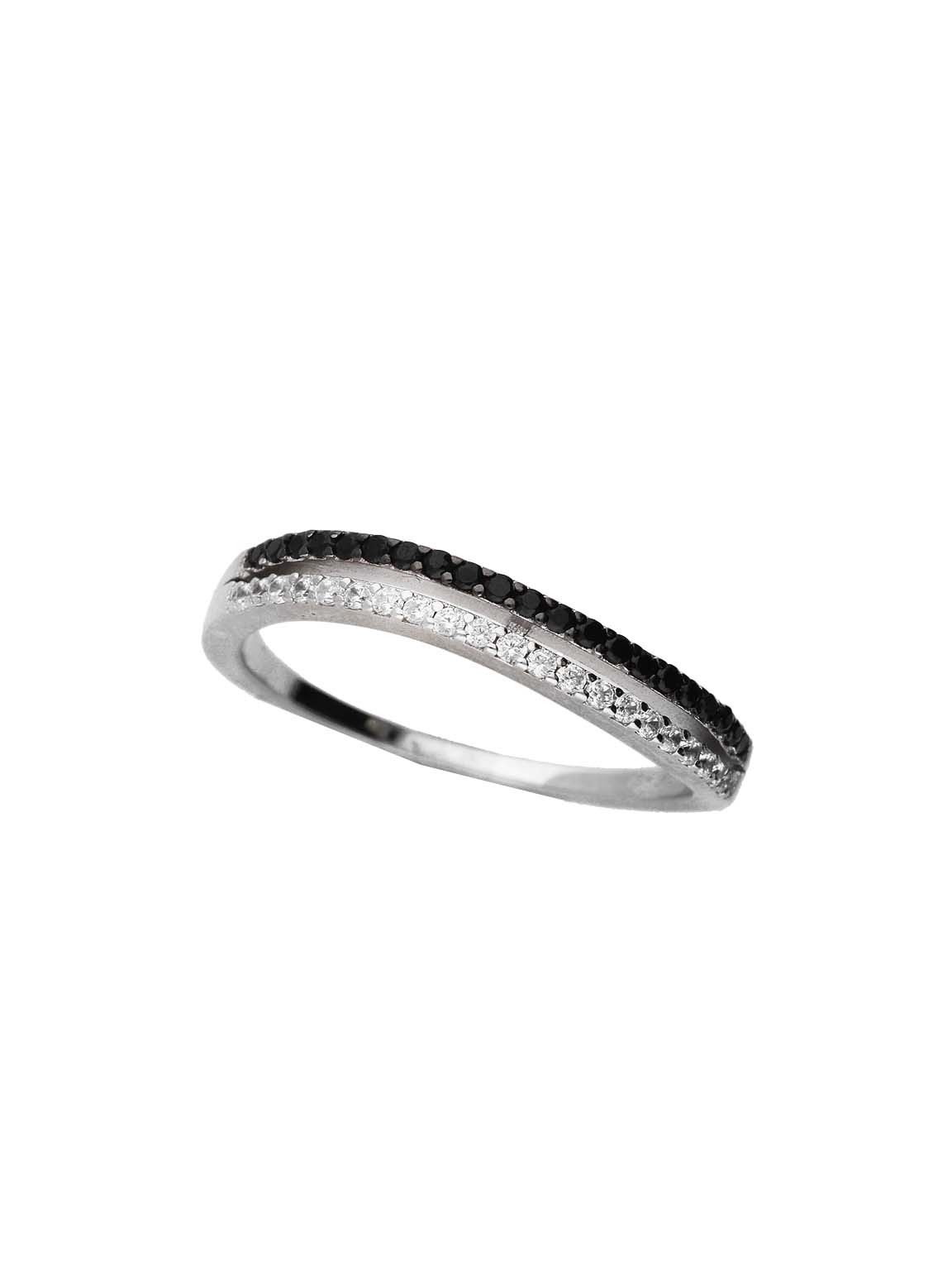 Anillo Delicado, Plata de Ley 925, Zirconia cúbica artificial, Negro, Claro, Círculo, Artificial, Color plateado, 2.38 g