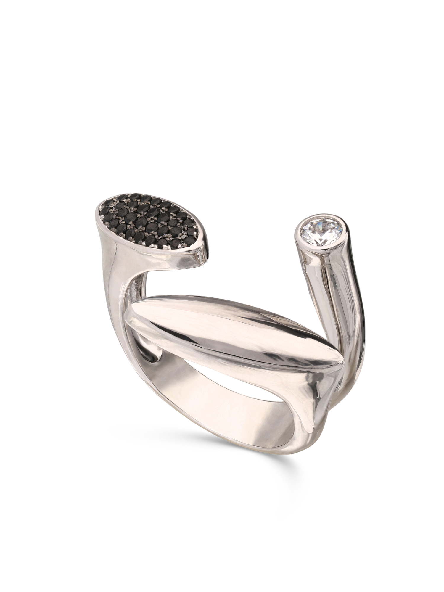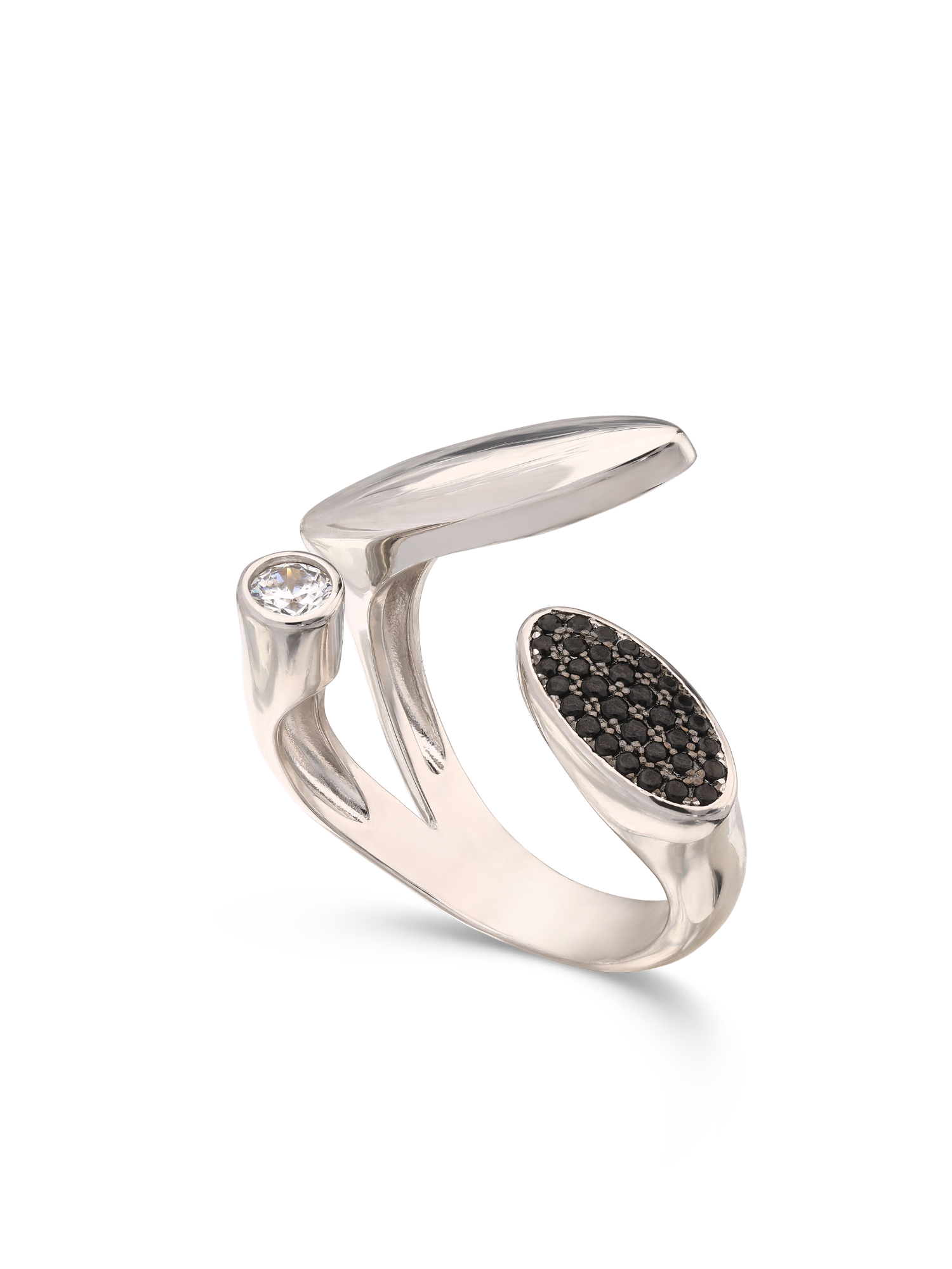 Anillo de Declaración, Plata 925 bañada en rodio, Zirconia cúbica artificial, Negro, Claro, Círculo, Artificial, Color plateado, 5.13 g