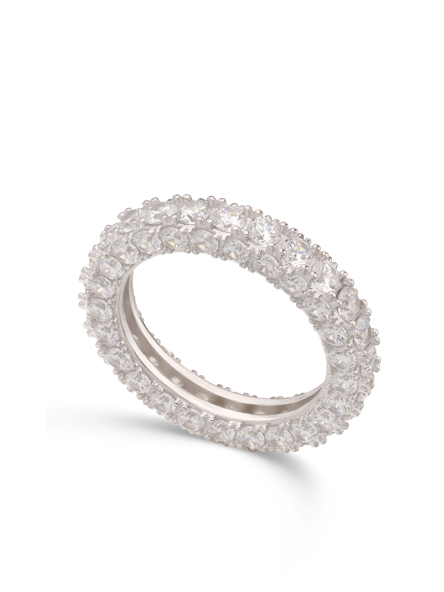 Anillo Delicado, Plata 925 bañada en rodio, Zirconia cúbica artificial, Claro, Círculo, Artificial, Color plateado, 5.15 g