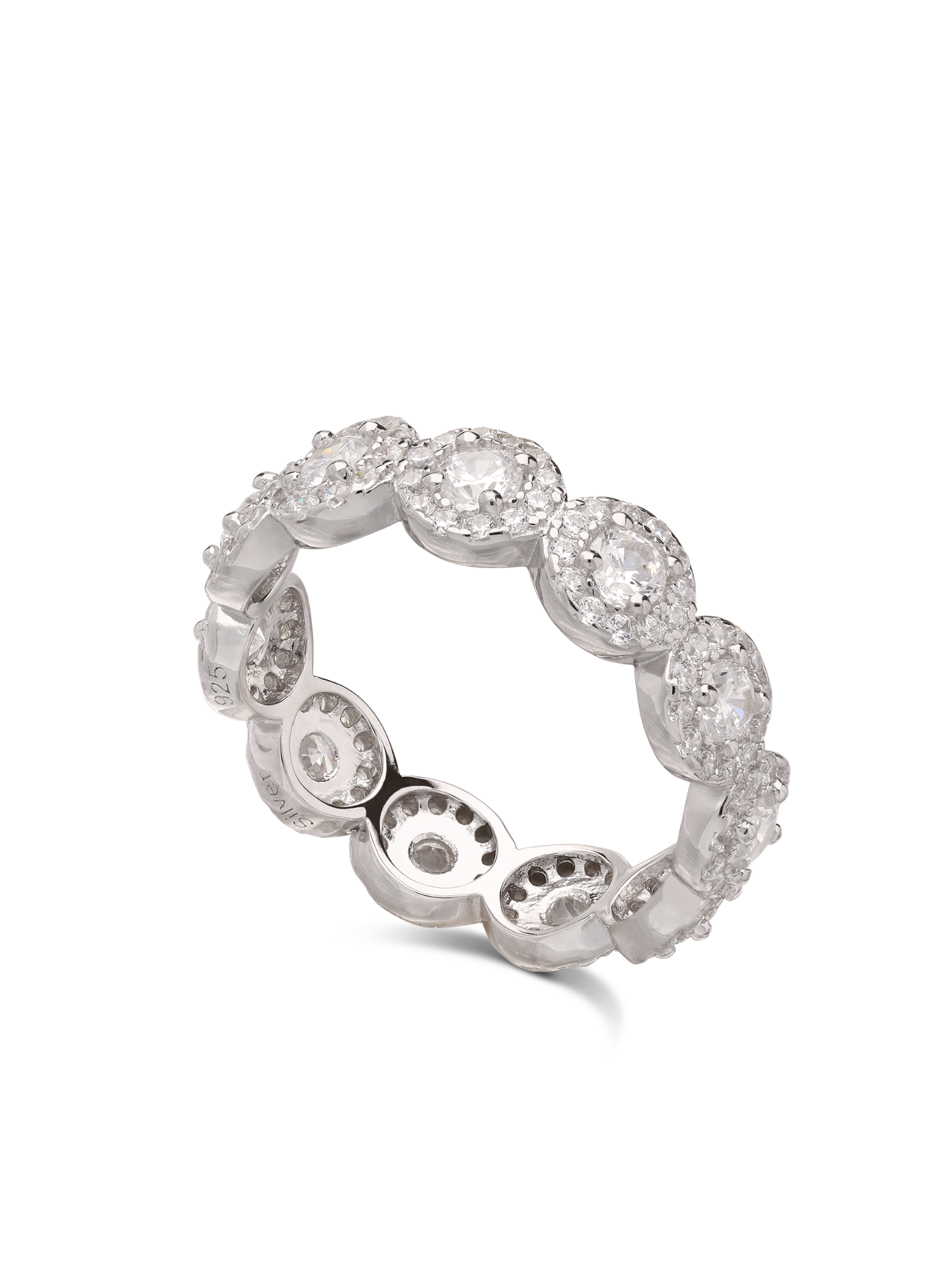 Anillo Delicado, Plata 925 bañada en rodio, Zirconia cúbica artificial, Claro, Círculo, Artificial, Color plateado, 3.82 g