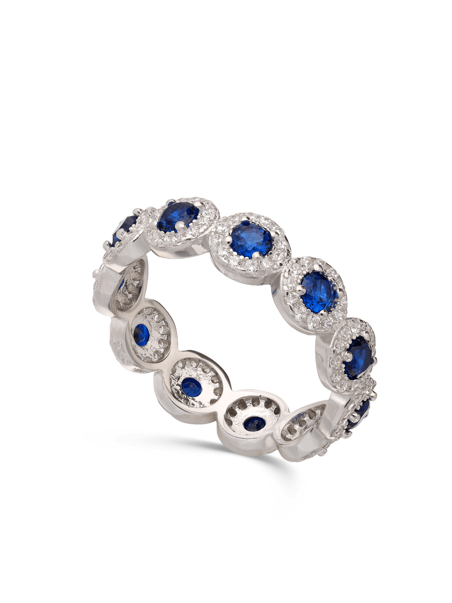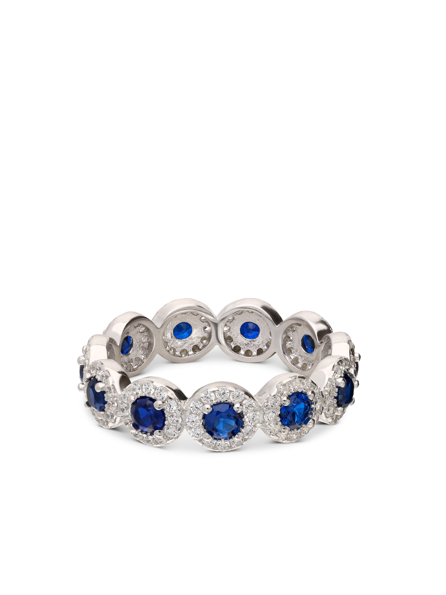 Anillo Delicado, Plata 925 bañada en rodio, Zirconia cúbica artificial, Azul, Claro, Círculo, Artificial, Color plateado, 3.66 g