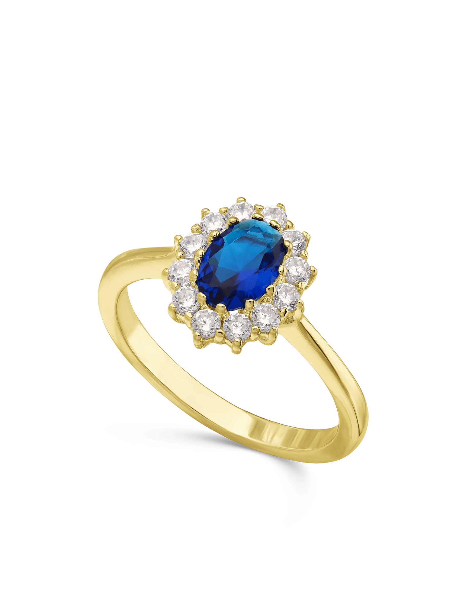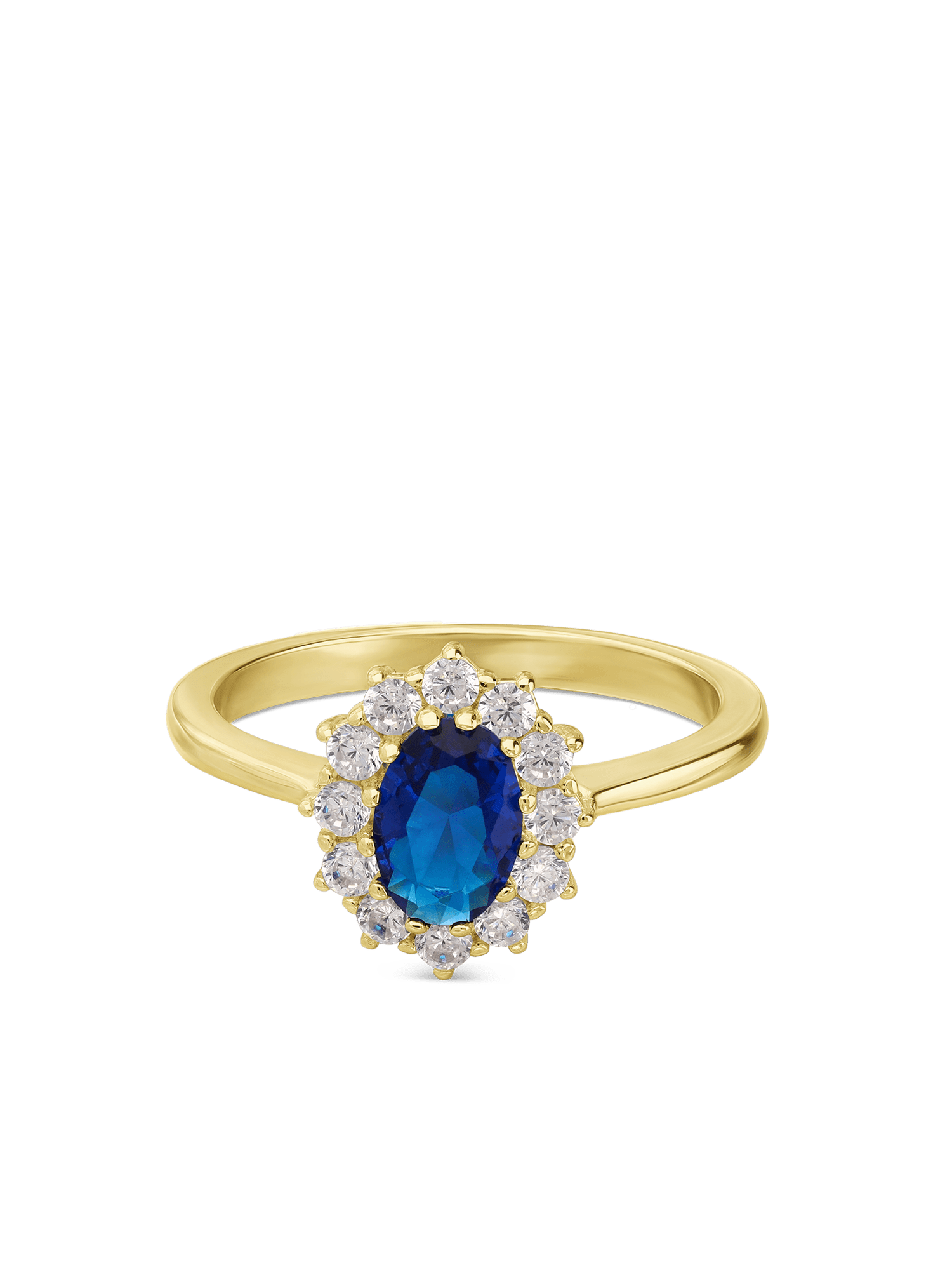 Anillo Delicado, Bañado en oro, Zirconia cúbica artificial, Azul, Claro, Círculo, Artificial, Color dorado, 2.60 g