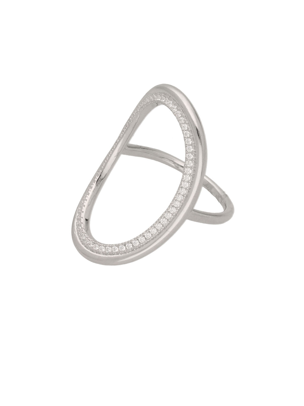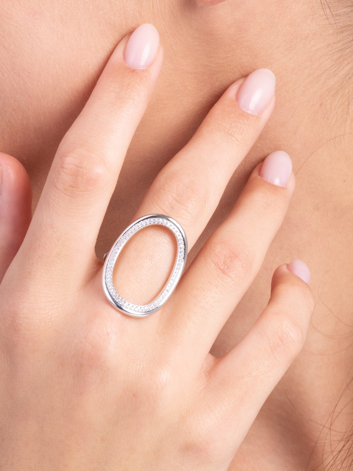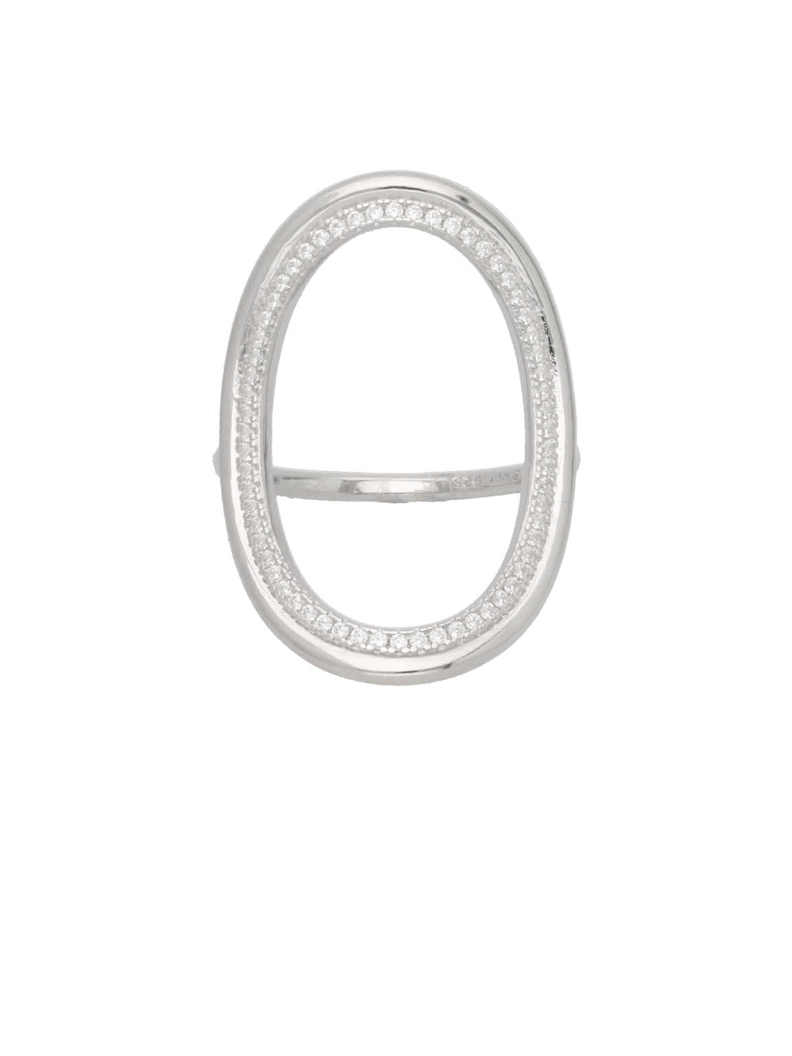 Anillo de Declaración, Plata 925 bañada en rodio, Zirconia cúbica artificial, Claro, Círculo, Artificial, Color plateado, altura del anillo: 2.8 cm, 4.63 g