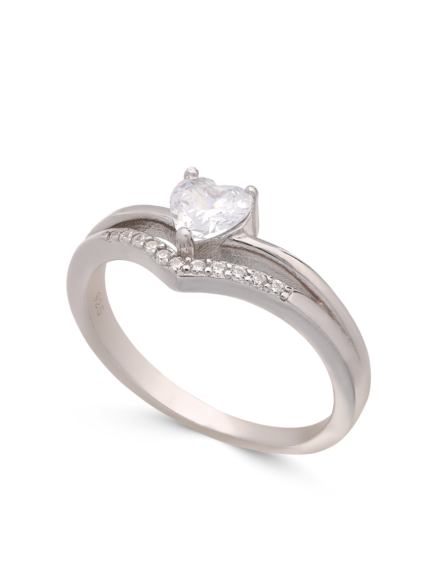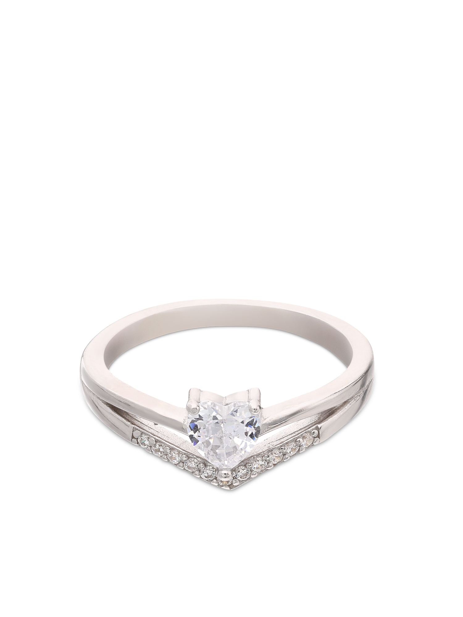 Anillo Delicado, Plata 925 bañada en rodio, Zirconia cúbica artificial, Claro, Corazón, Artificial, Color plateado, 2.20 g