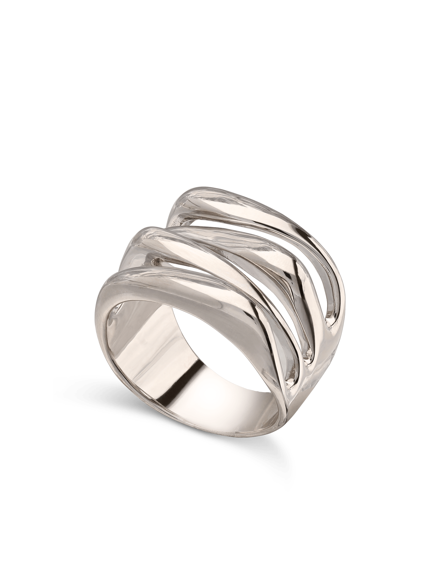 Anillo de Declaración, Plata 925 bañada en rodio, Sin piedra, Sin color, Forma no específica, Color plateado, altura del anillo: 2.0 cm, 6.91 g
