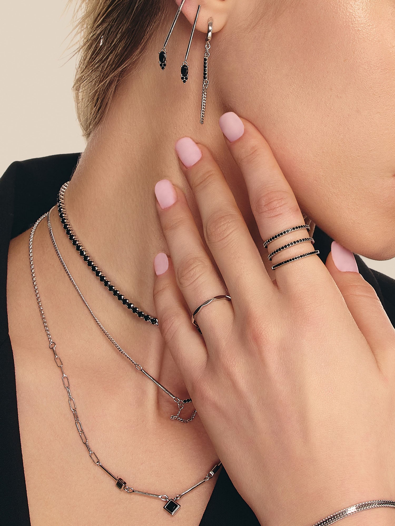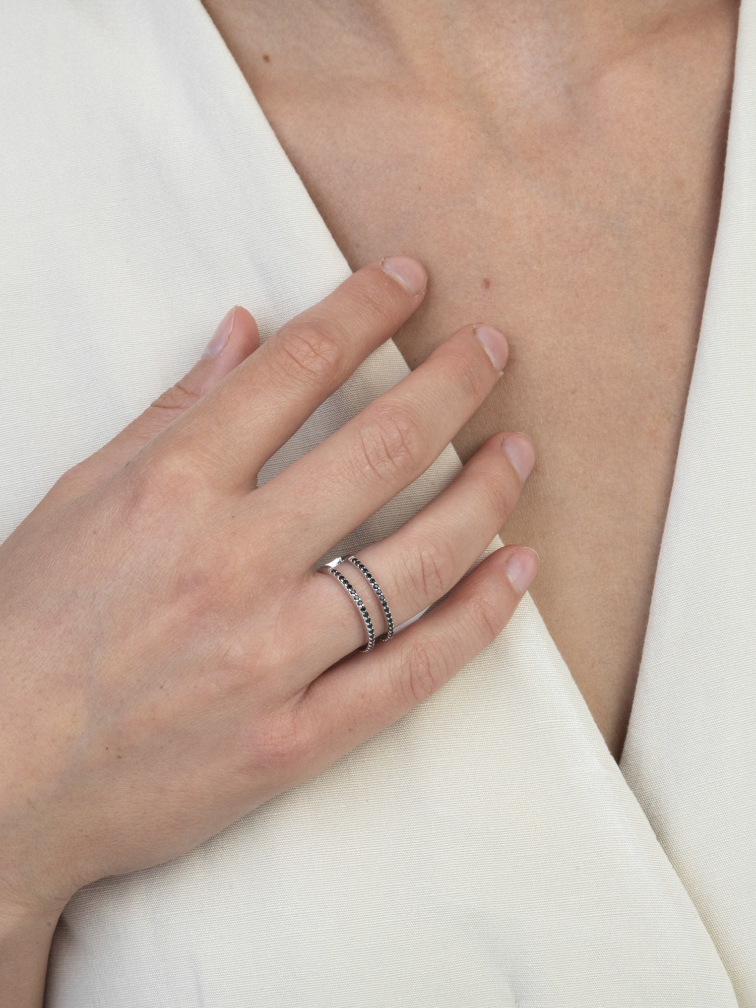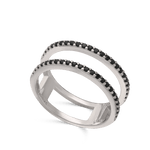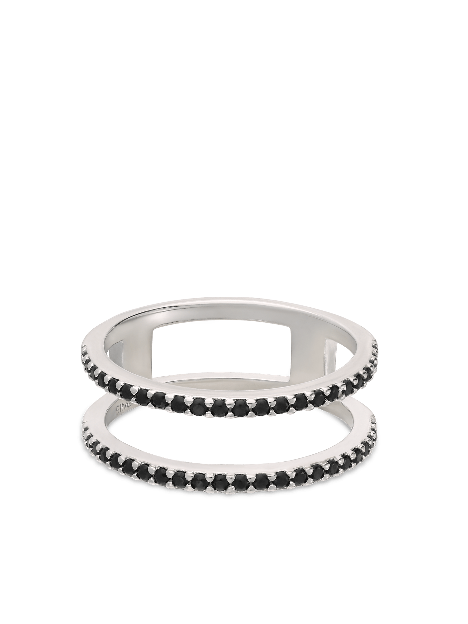 Anillo Delicado, Plata 925 bañada en rodio, Zirconia cúbica artificial, Negro, Círculo, Artificial, Color plateado, 2.54 g