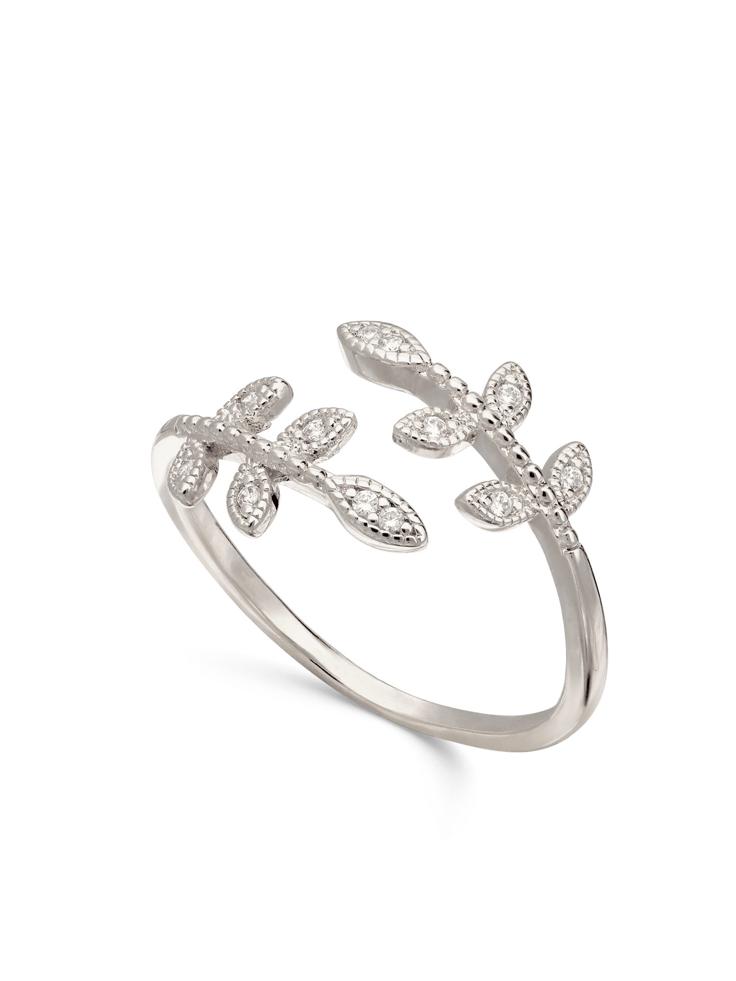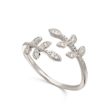 Anillo Delicado, Plata 925 bañada en rodio, Zirconia cúbica artificial, Claro, Hoja, Artificial, Color plateado, 1.34 g