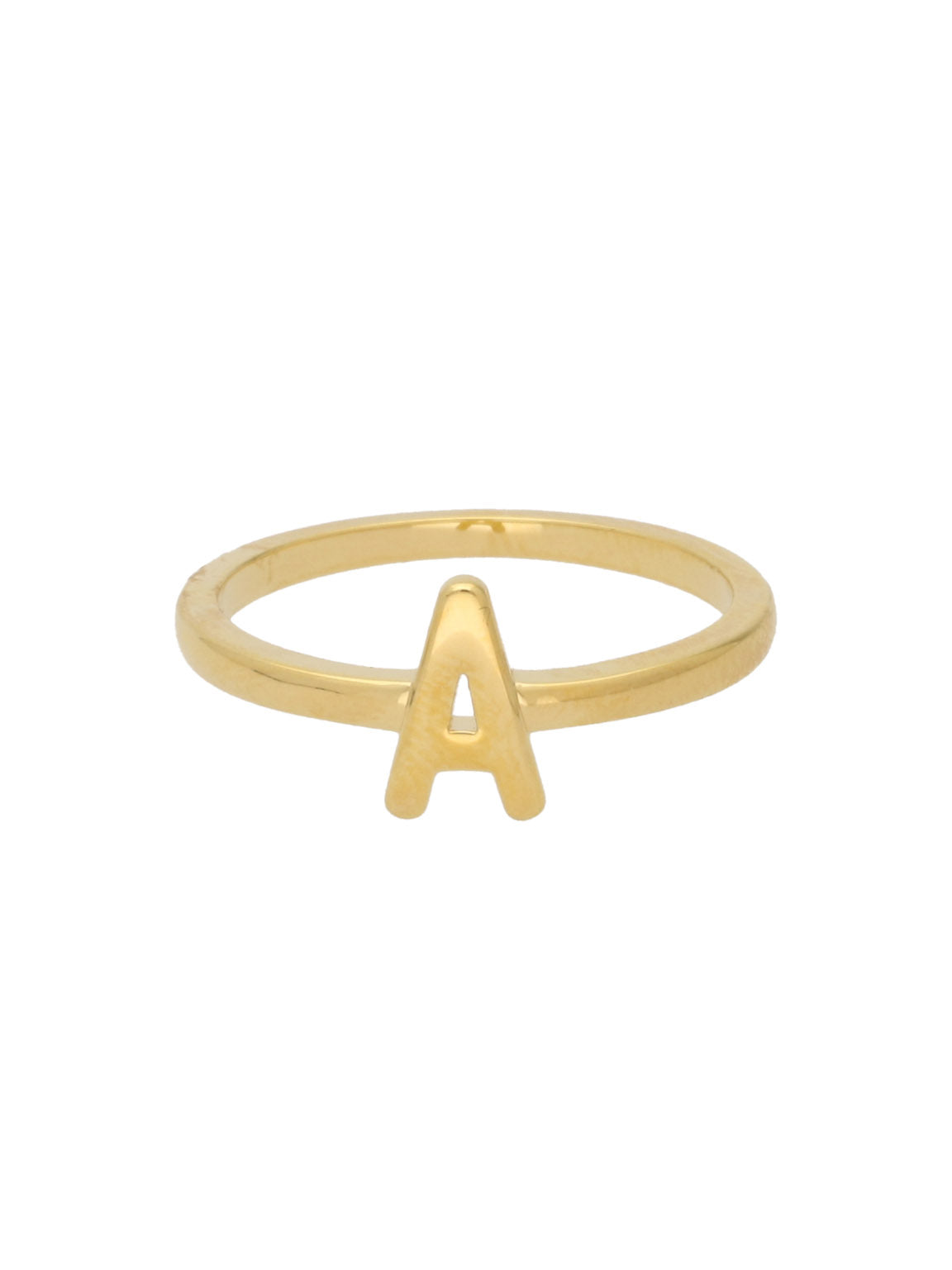 Anillo Delicado, Bañado en oro, Sin piedra, Sin color, Letra, Color dorado, altura del anillo: 0.8 cm, 1.38 g