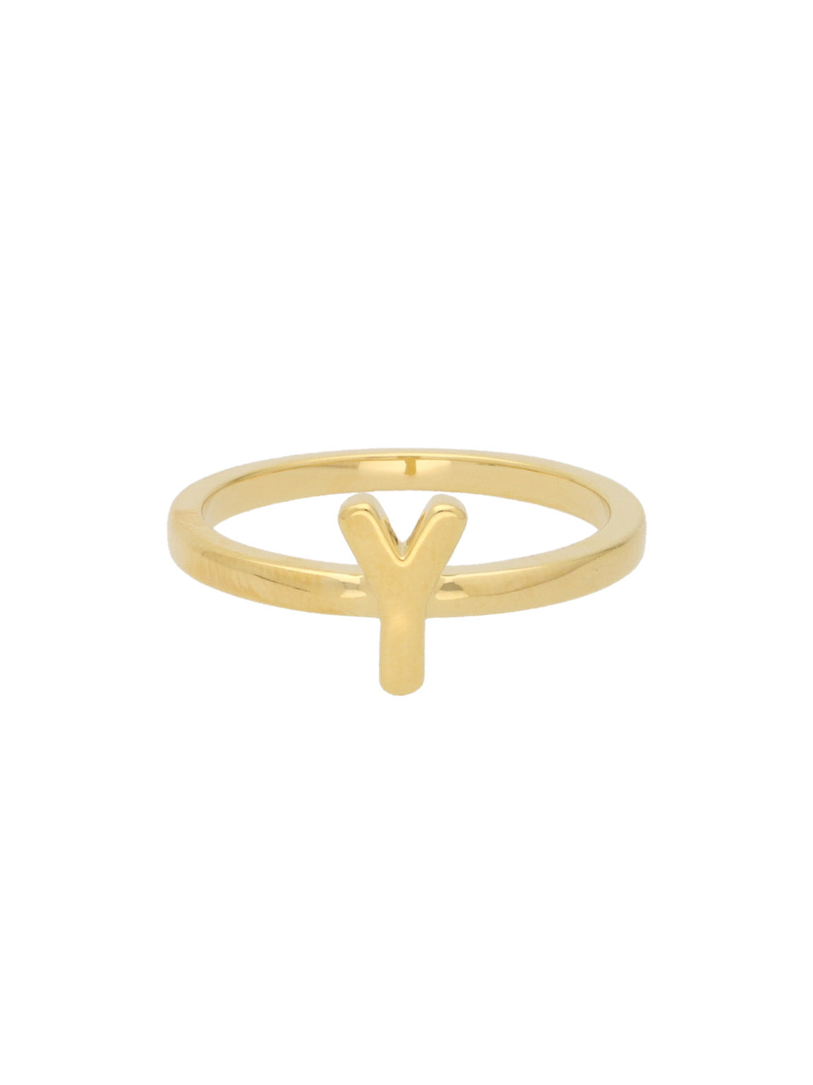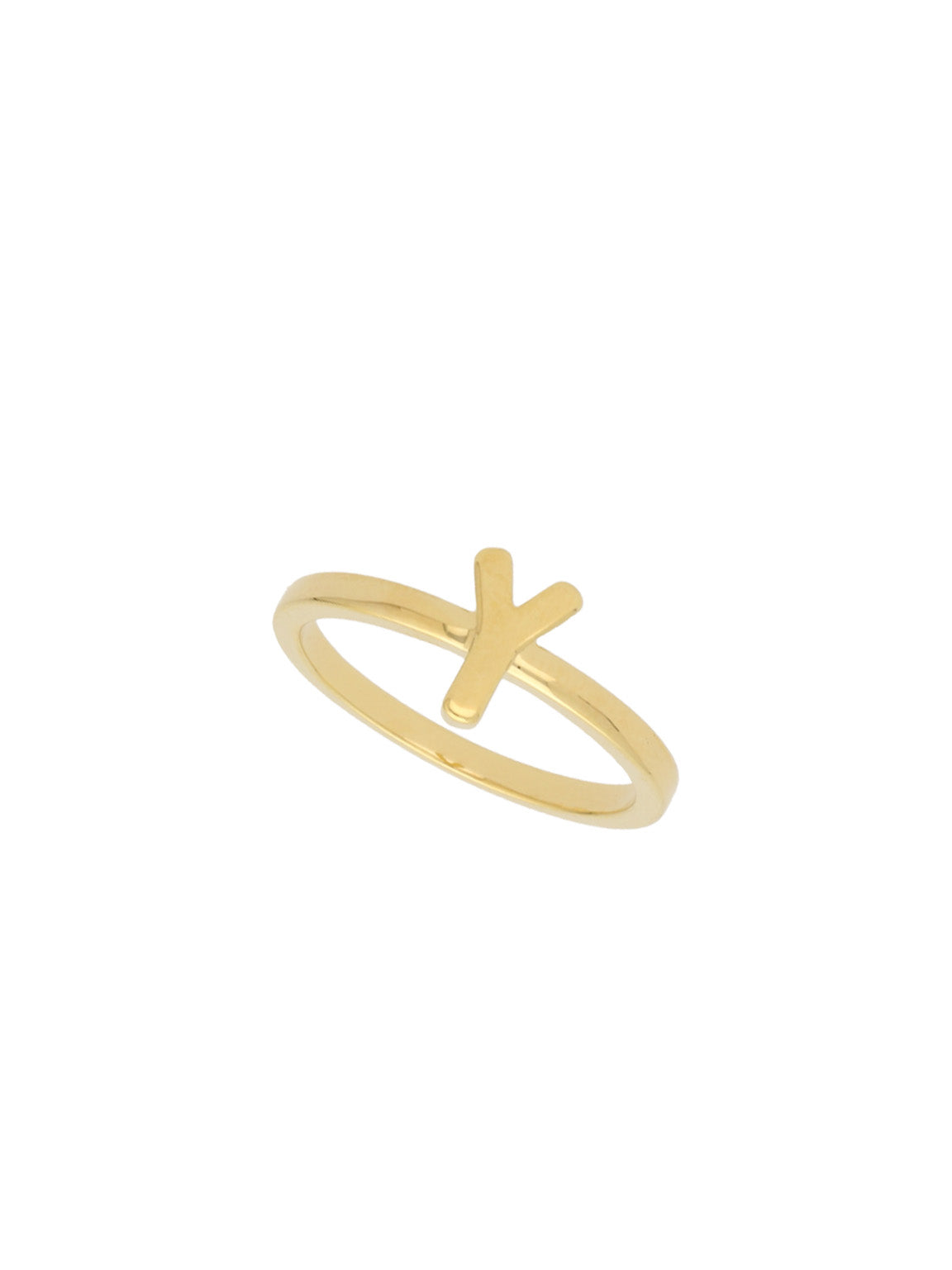 Anillo Delicado, Bañado en oro, Sin piedra, Sin color, Letra, Color dorado, altura del anillo: 0.8 cm, 1.53 g