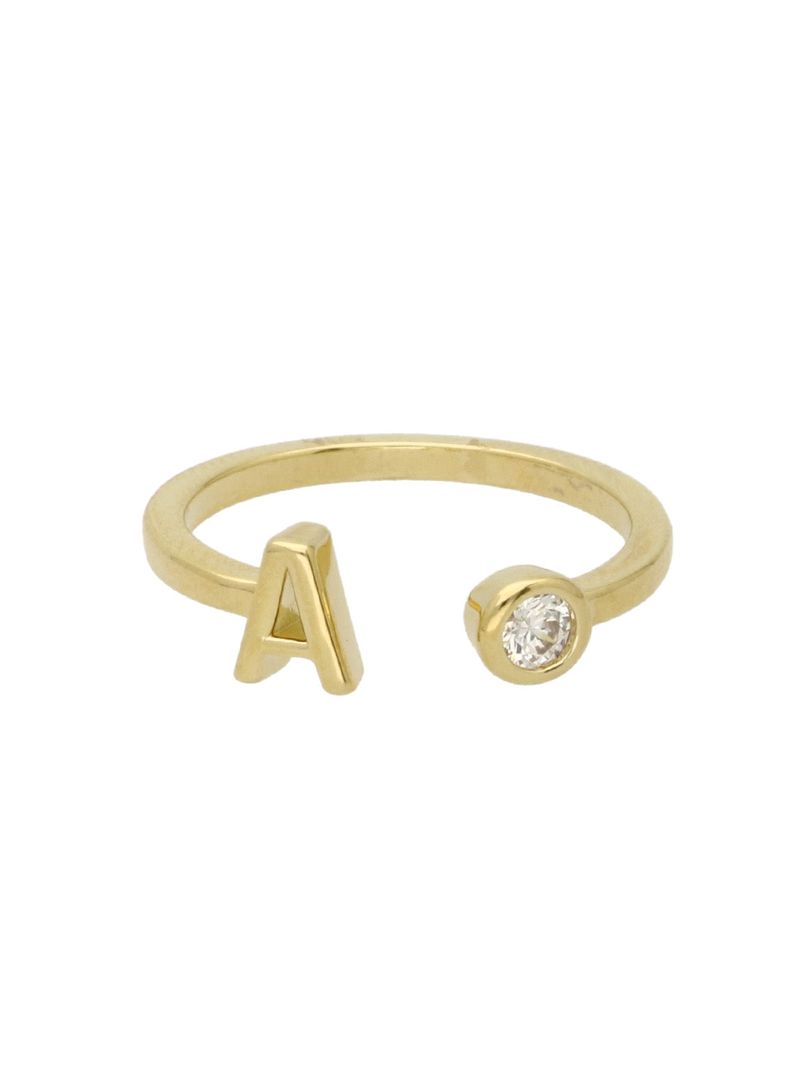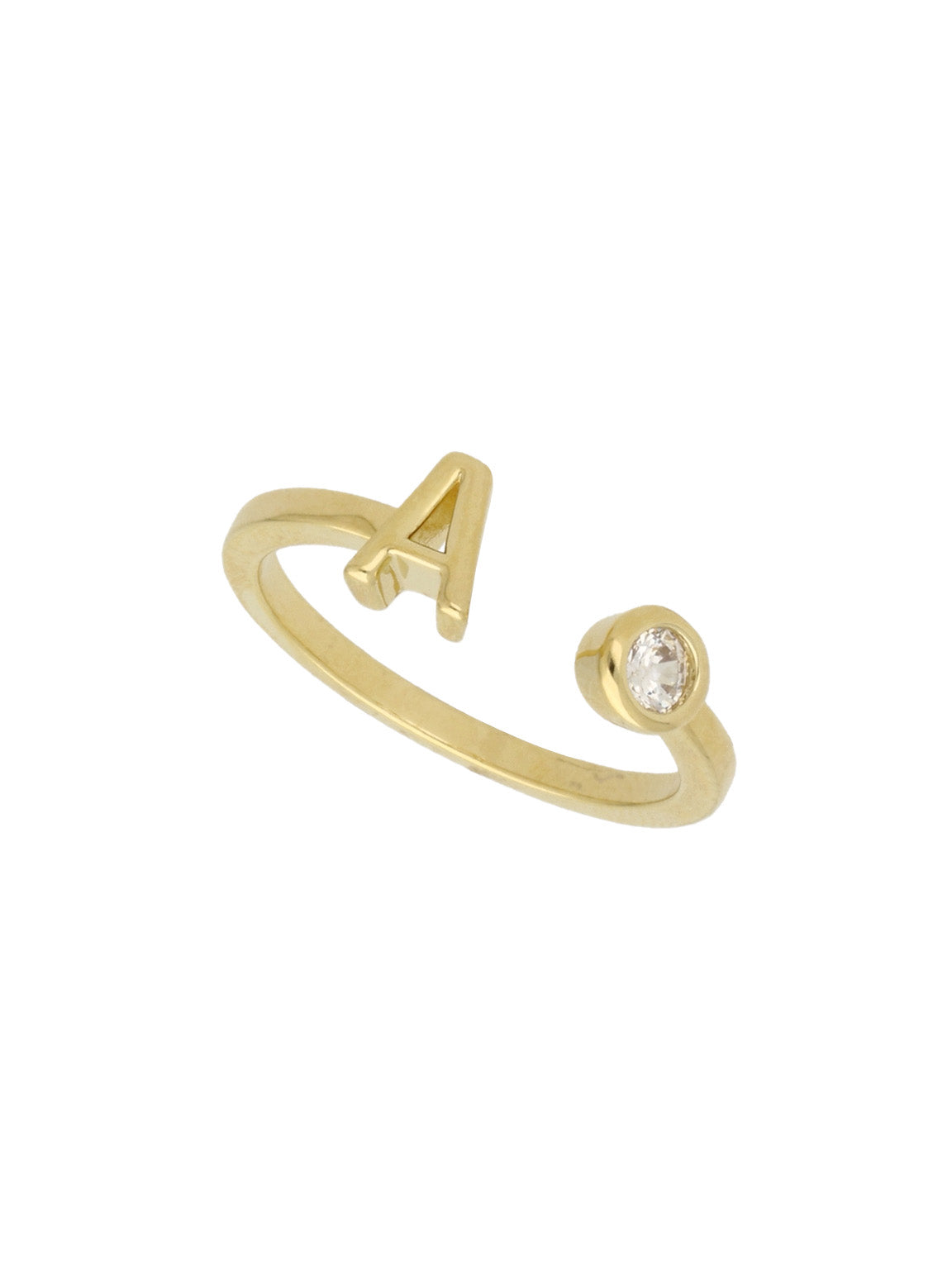 Anillo Delicado, Bañado en oro, Zirconia cúbica artificial, Claro, Círculo, Letra, Artificial, Color dorado, 1.63 g