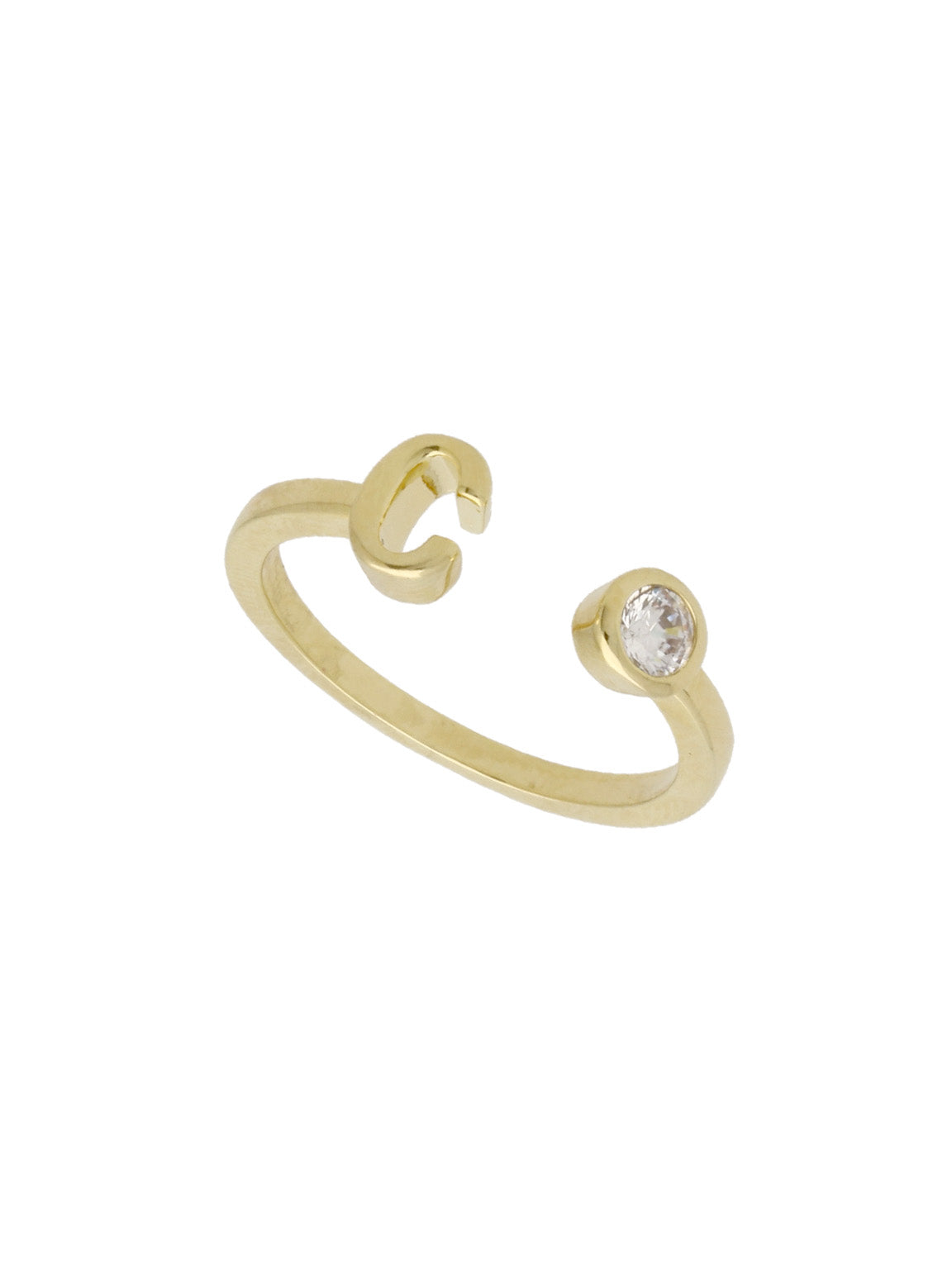 Anillo Delicado, Bañado en oro, Zirconia cúbica artificial, Claro, Círculo, Letra, Artificial, Color dorado, 1.54 g