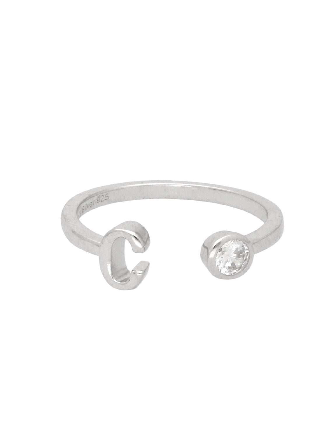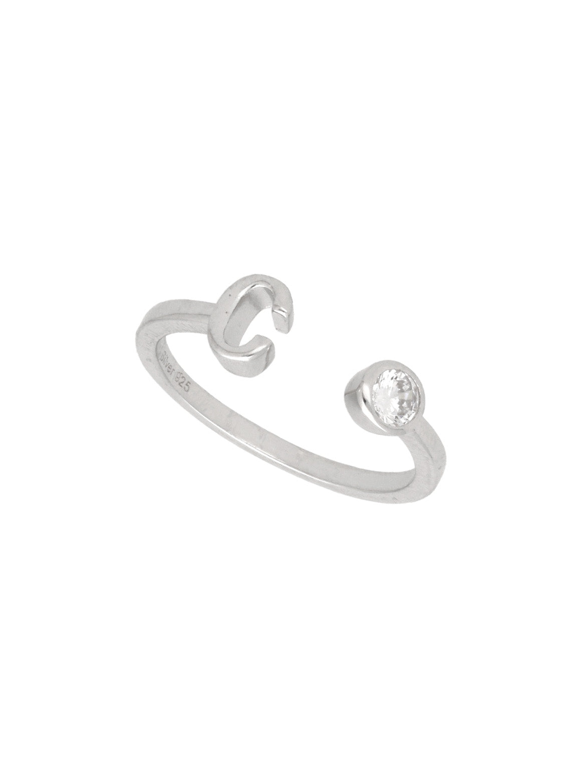 Anillo Delicado, Plata 925 bañada en rodio, Zirconia cúbica artificial, Claro, Círculo, Letra, Artificial, Color plateado, 1.69 g