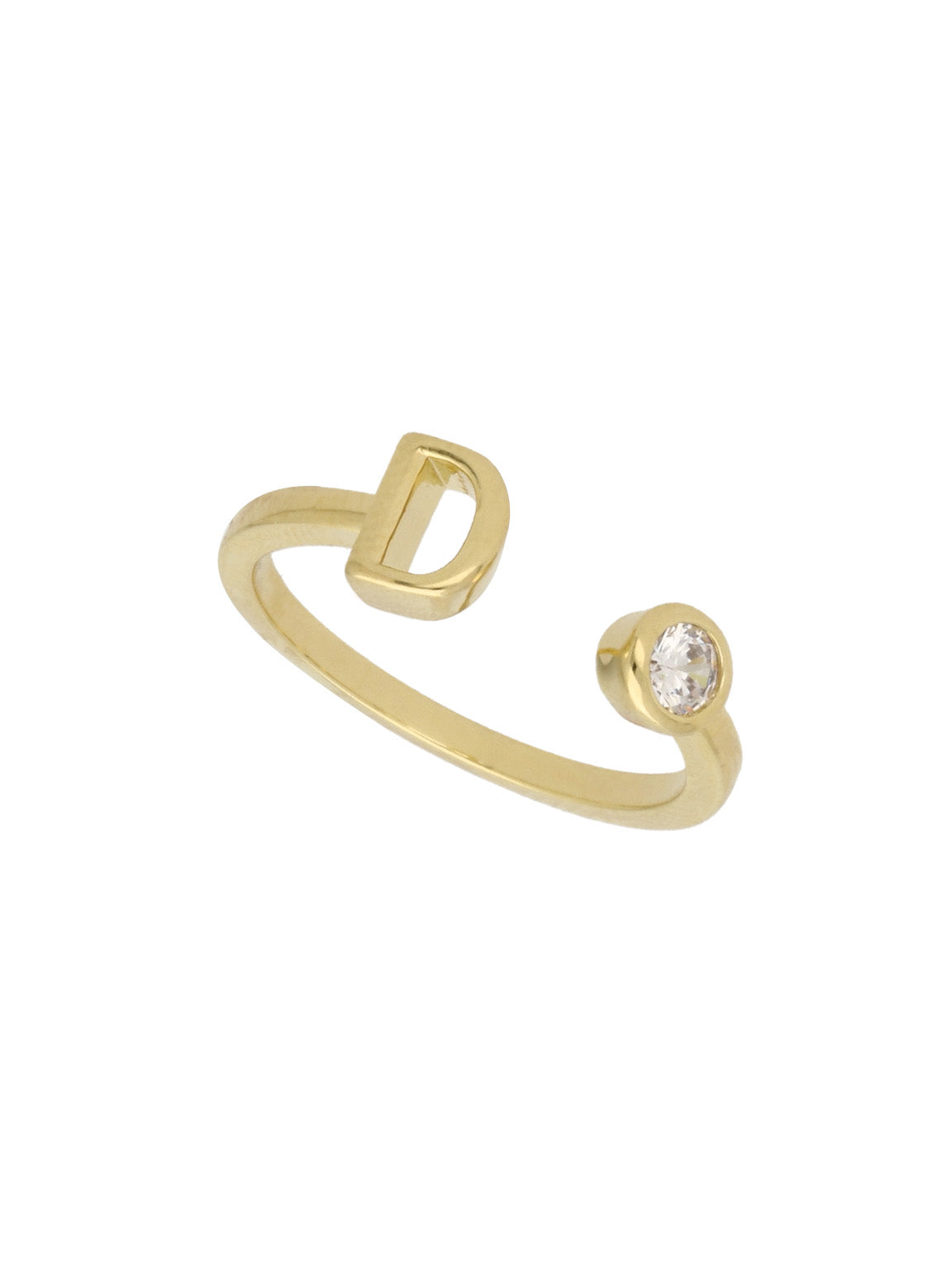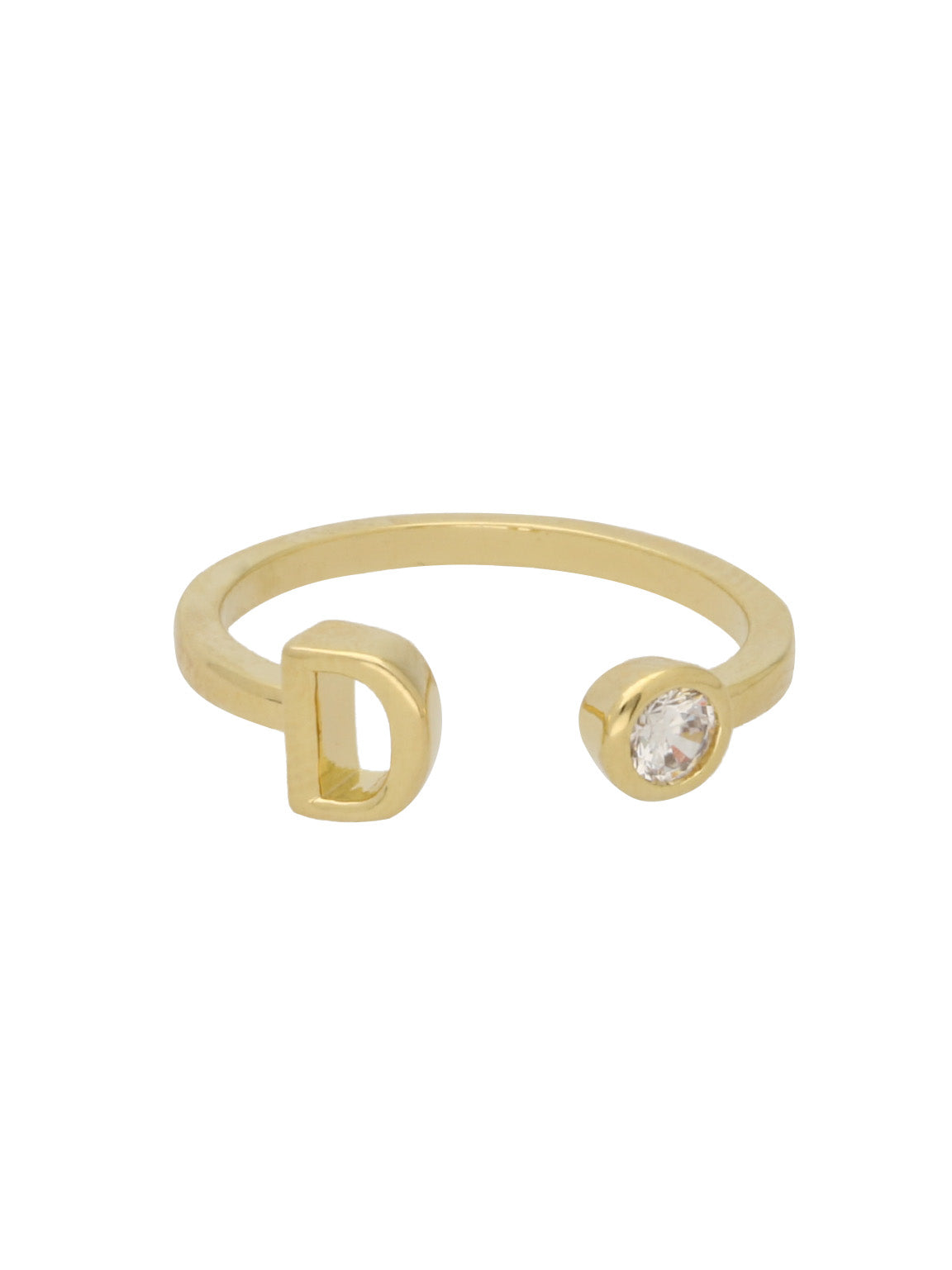 Anillo Delicado, Bañado en oro, Zirconia cúbica artificial, Claro, Círculo, Letra, Artificial, Color dorado, 1.59 g