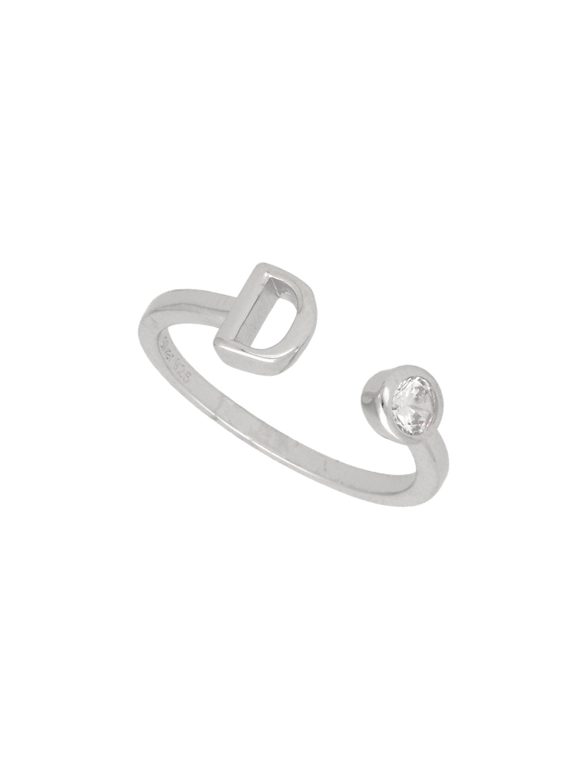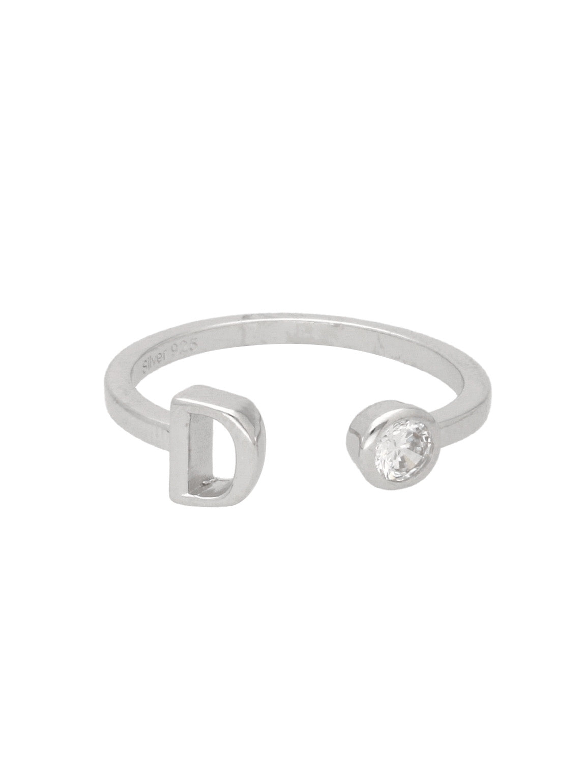 Anillo Delicado, Plata 925 bañada en rodio, Zirconia cúbica artificial, Claro, Círculo, Letra, Artificial, Color plateado, 1.71 g