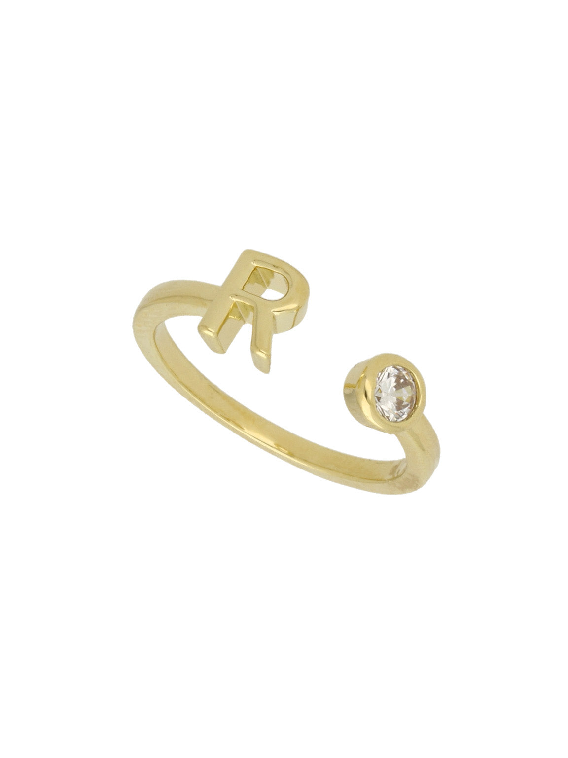 Anillo Delicado, Bañado en oro, Zirconia cúbica artificial, Claro, Círculo, Letra, Artificial, Color dorado, 1.70 g