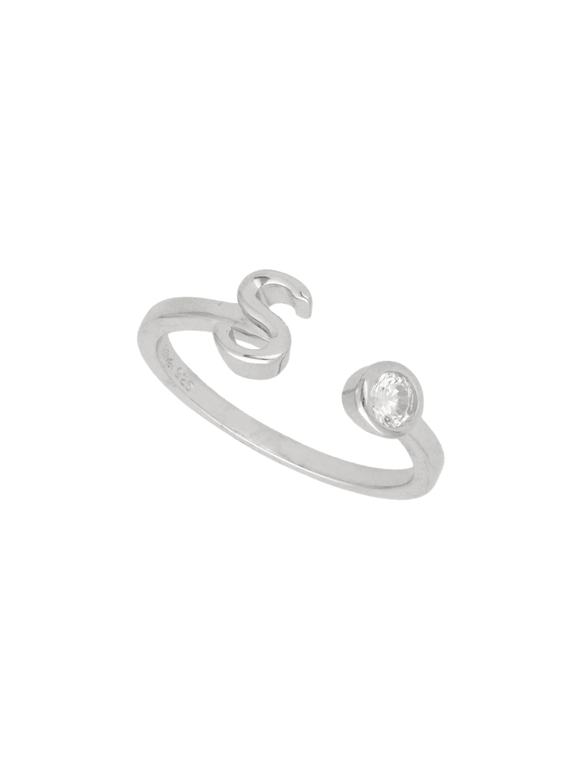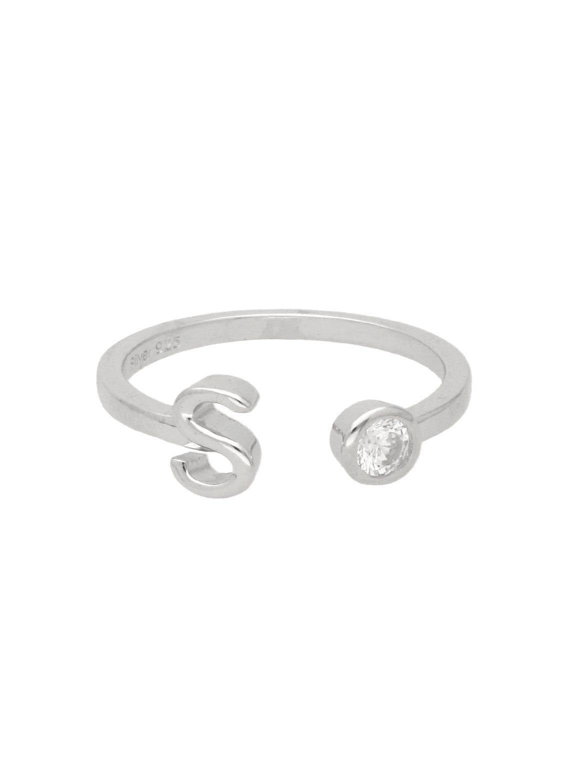 Anillo Delicado, Plata 925 bañada en rodio, Zirconia cúbica artificial, Claro, Círculo, Letra, Artificial, Color plateado, 1.71 g