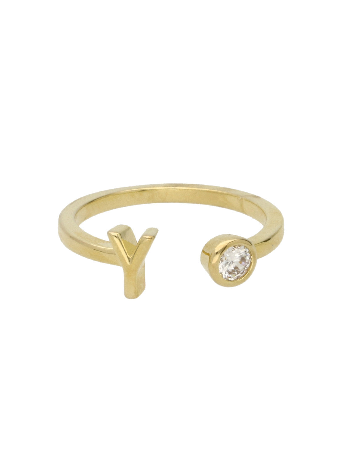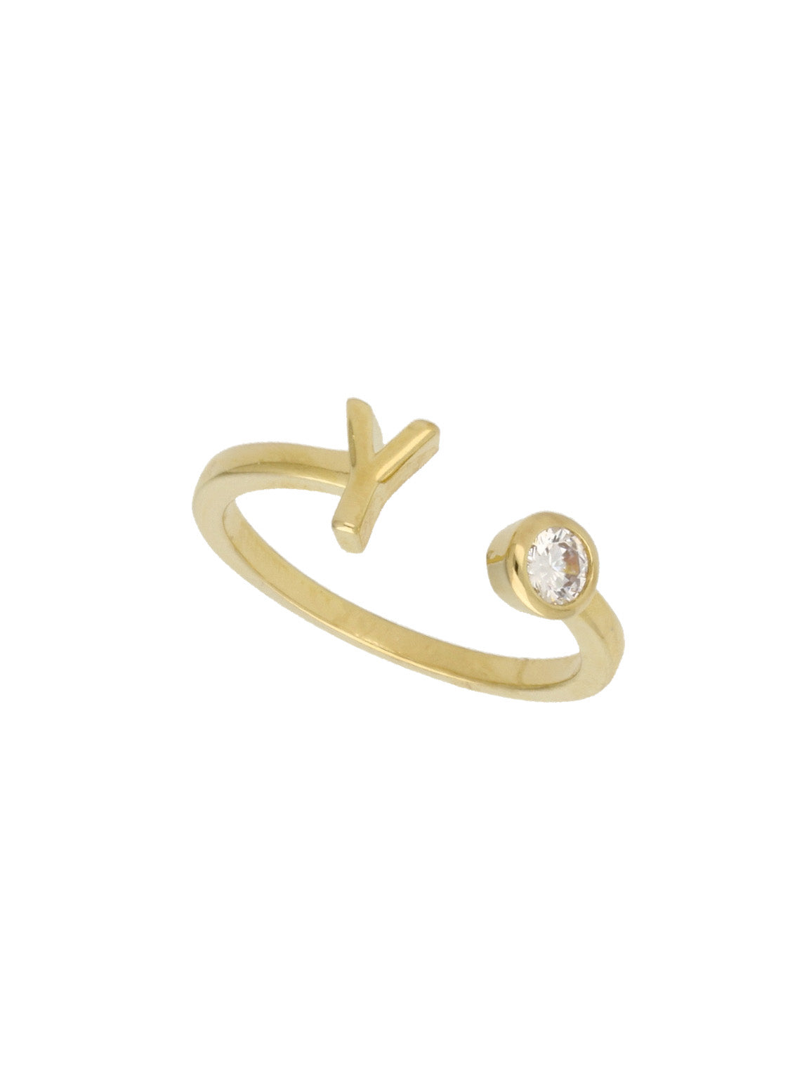 Anillo Delicado, Bañado en oro, Zirconia cúbica artificial, Claro, Círculo, Letra, Artificial, Color dorado, 1.53 g