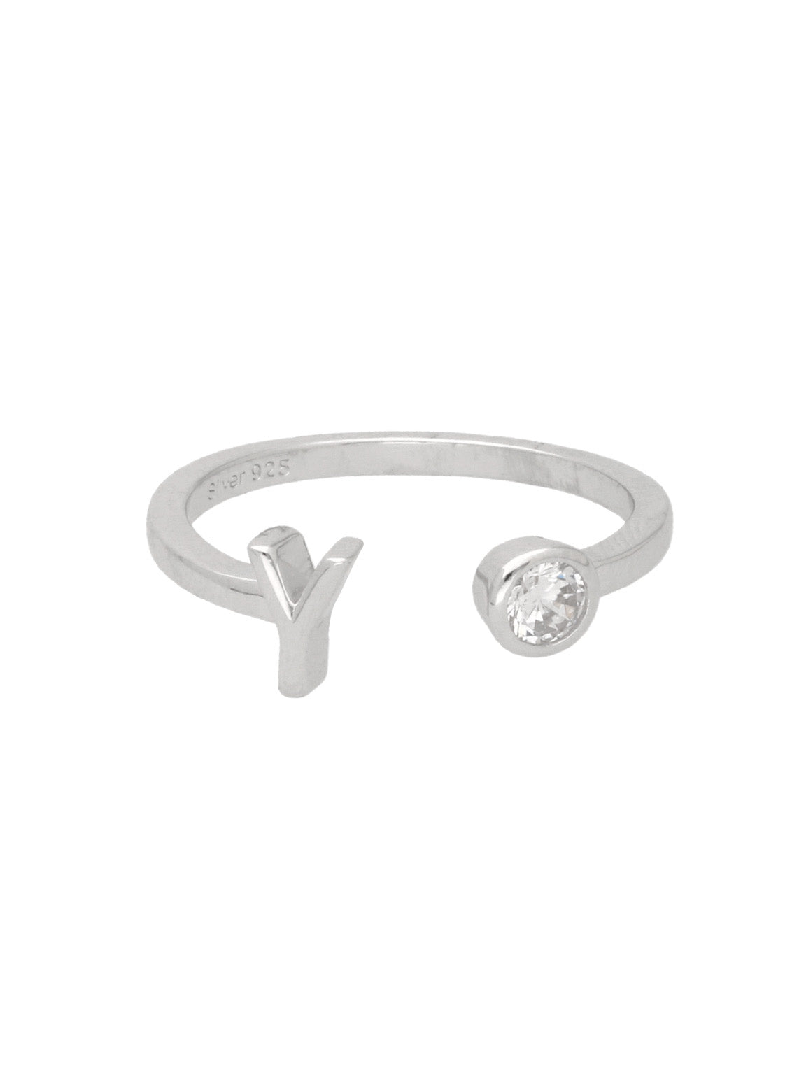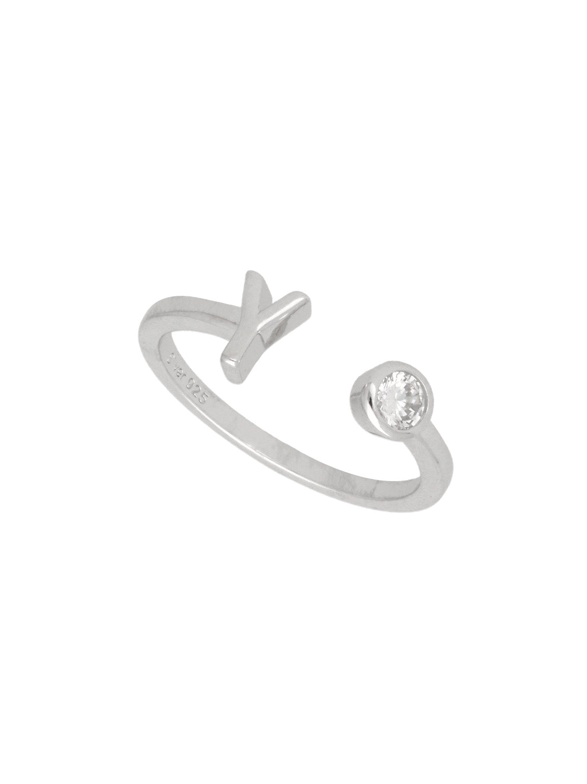 Anillo Delicado, Plata 925 bañada en rodio, Zirconia cúbica artificial, Claro, Círculo, Letra, Artificial, Color plateado, 1.73 g