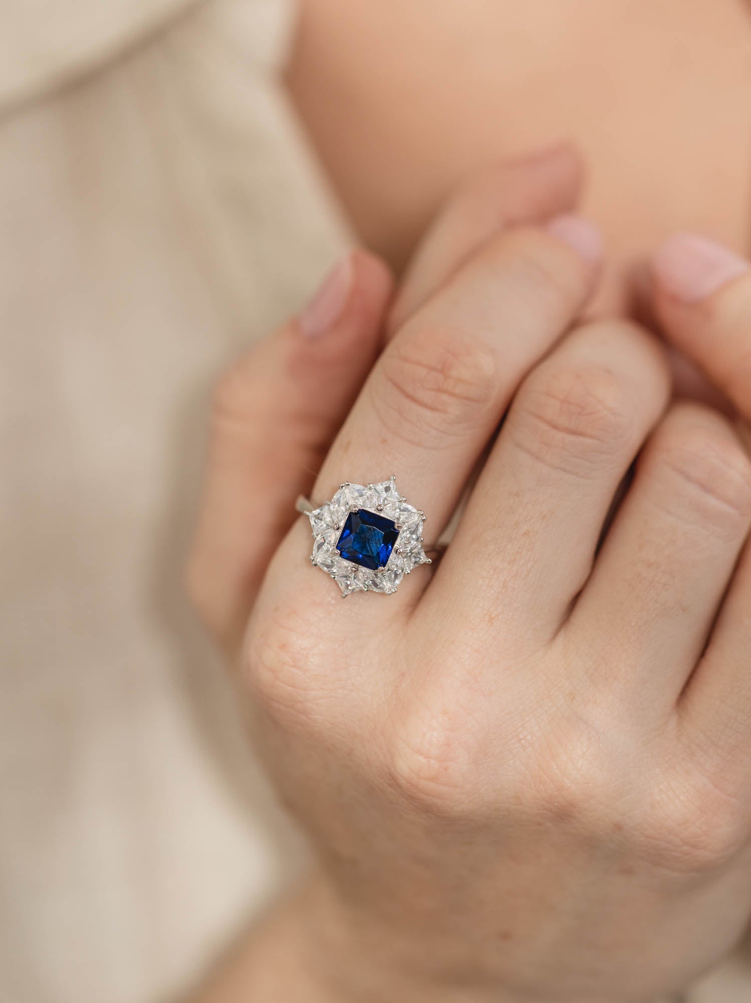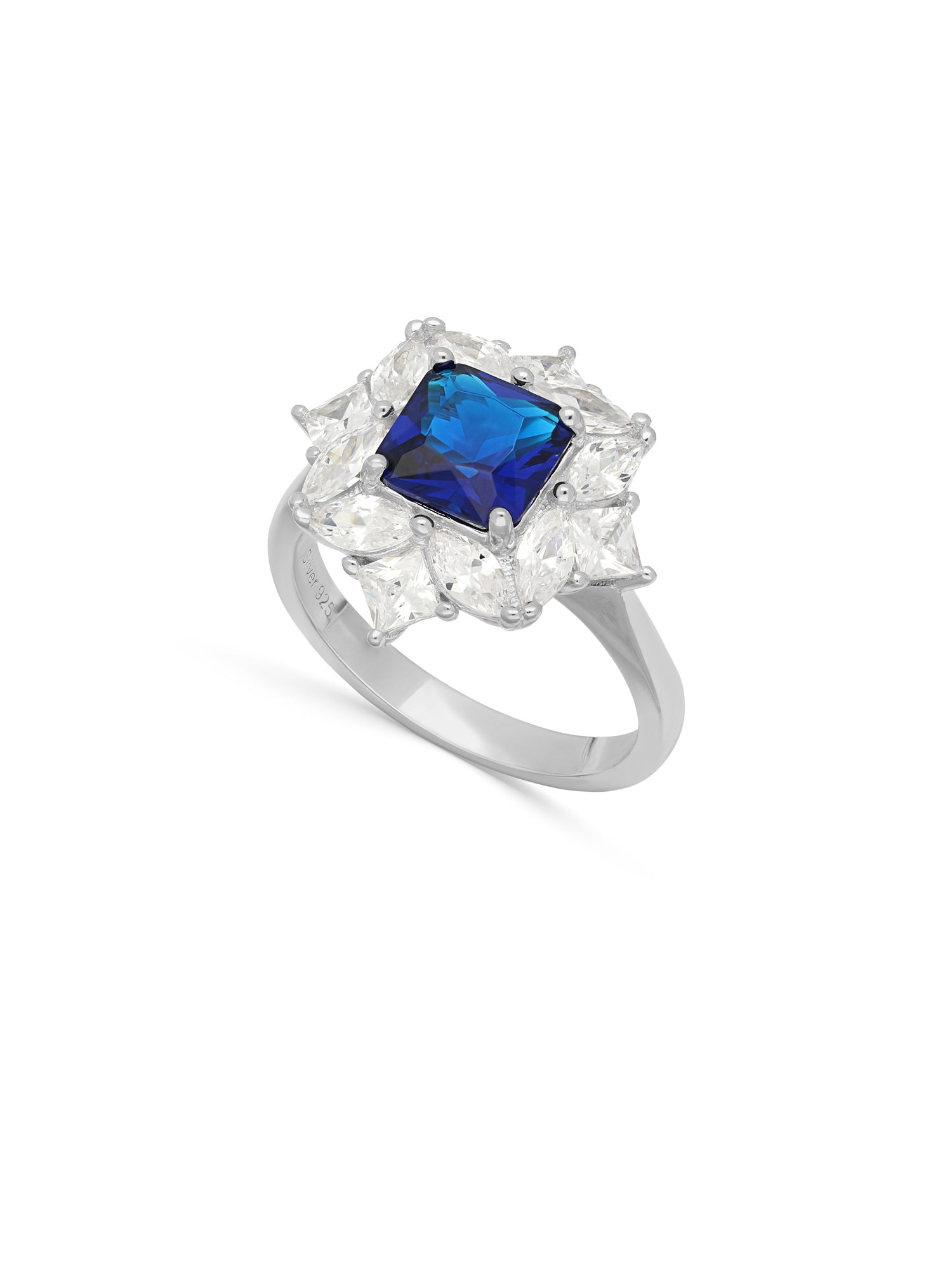 Anillo Delicado, Plata 925 bañada en rodio, Zirconia cúbica artificial, Azul, Claro, Variedad de formas, Artificial, Color plateado, 4.38 g