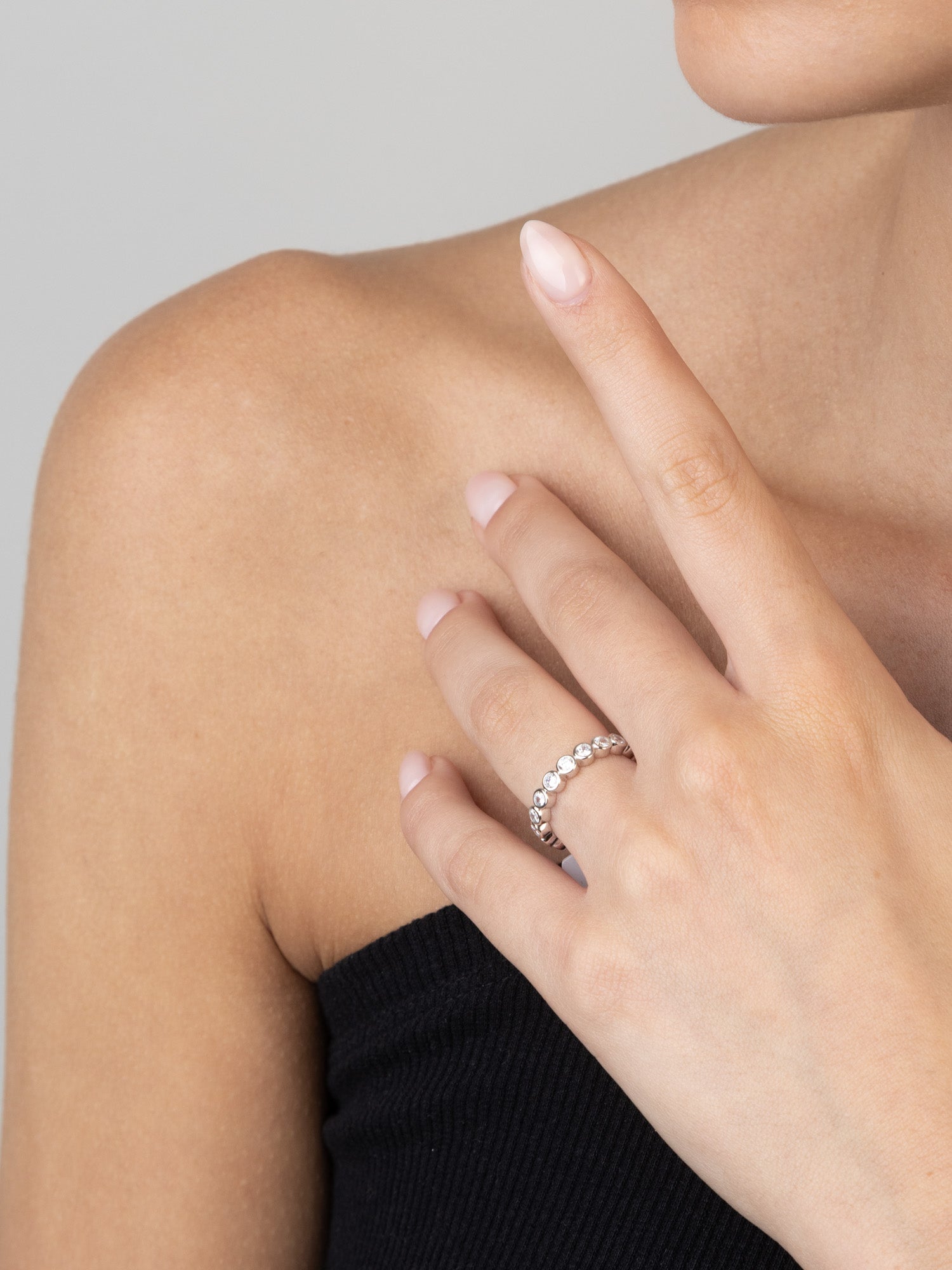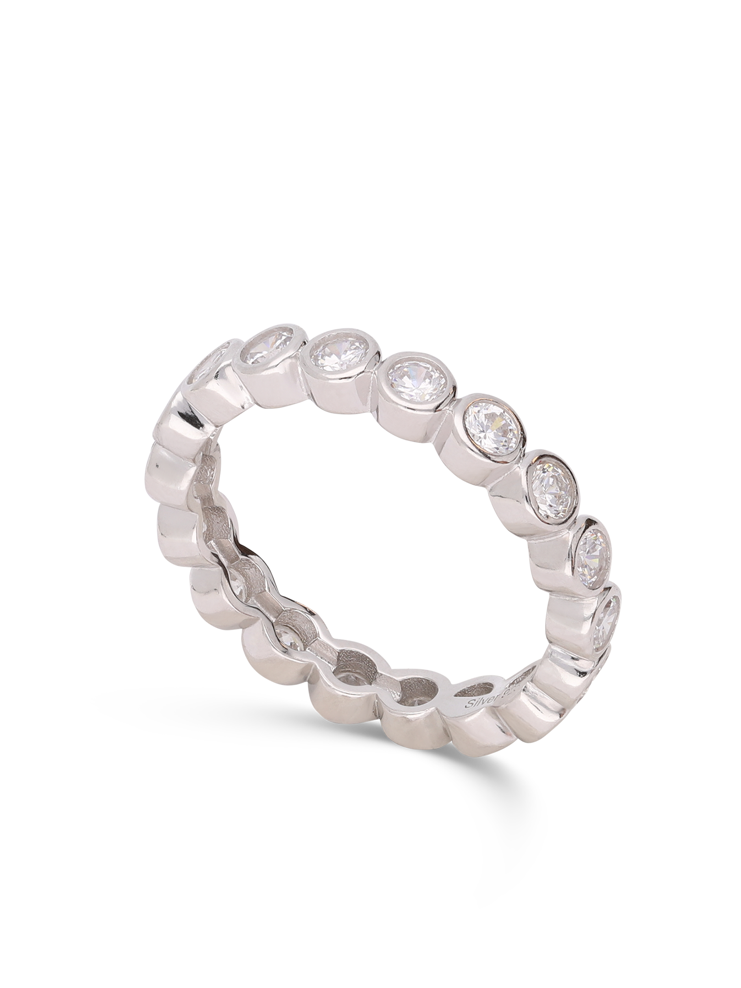 Anillo Delicado, Plata 925 bañada en rodio, Zirconia cúbica artificial, Claro, Círculo, Artificial, Color plateado, 2.97 g