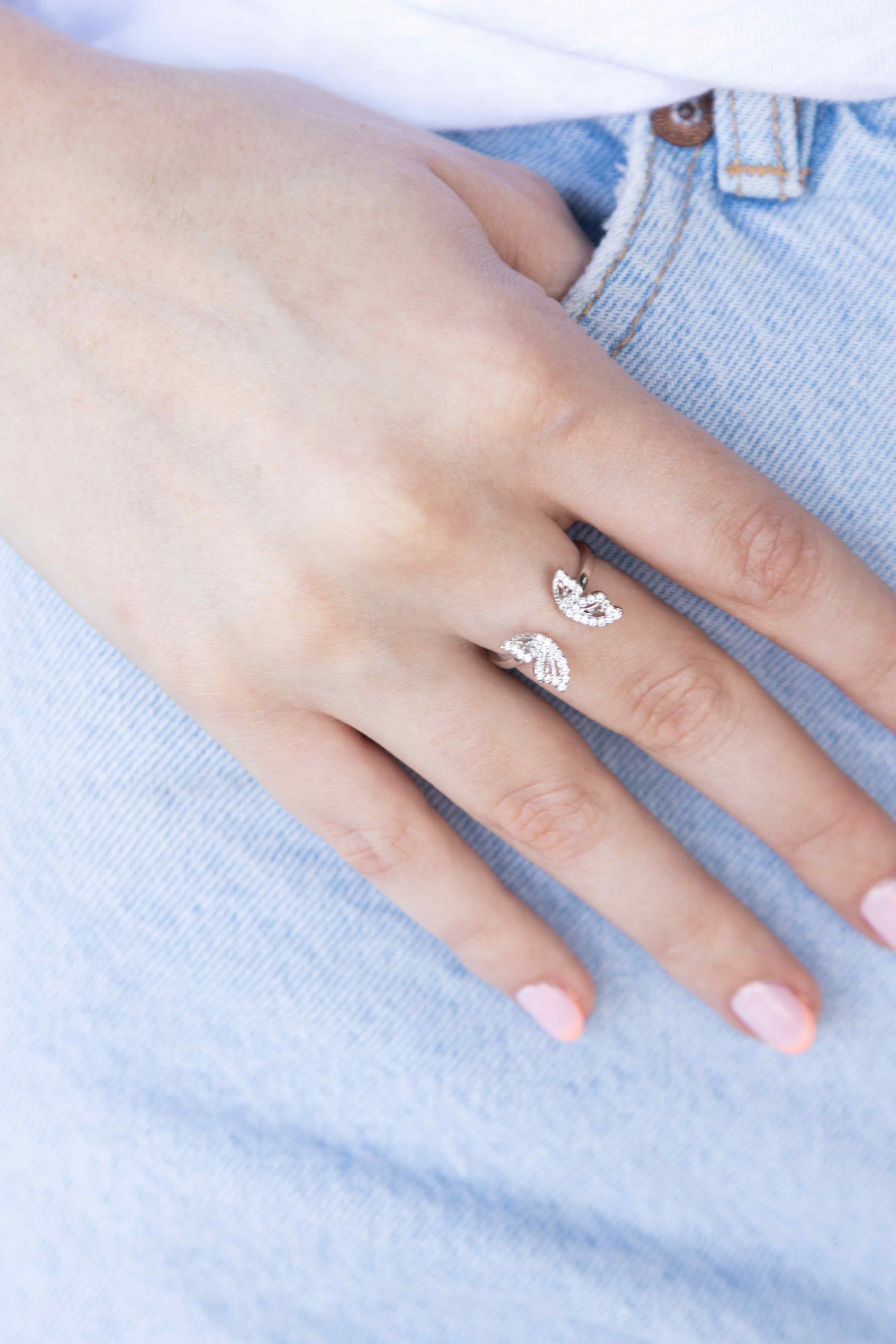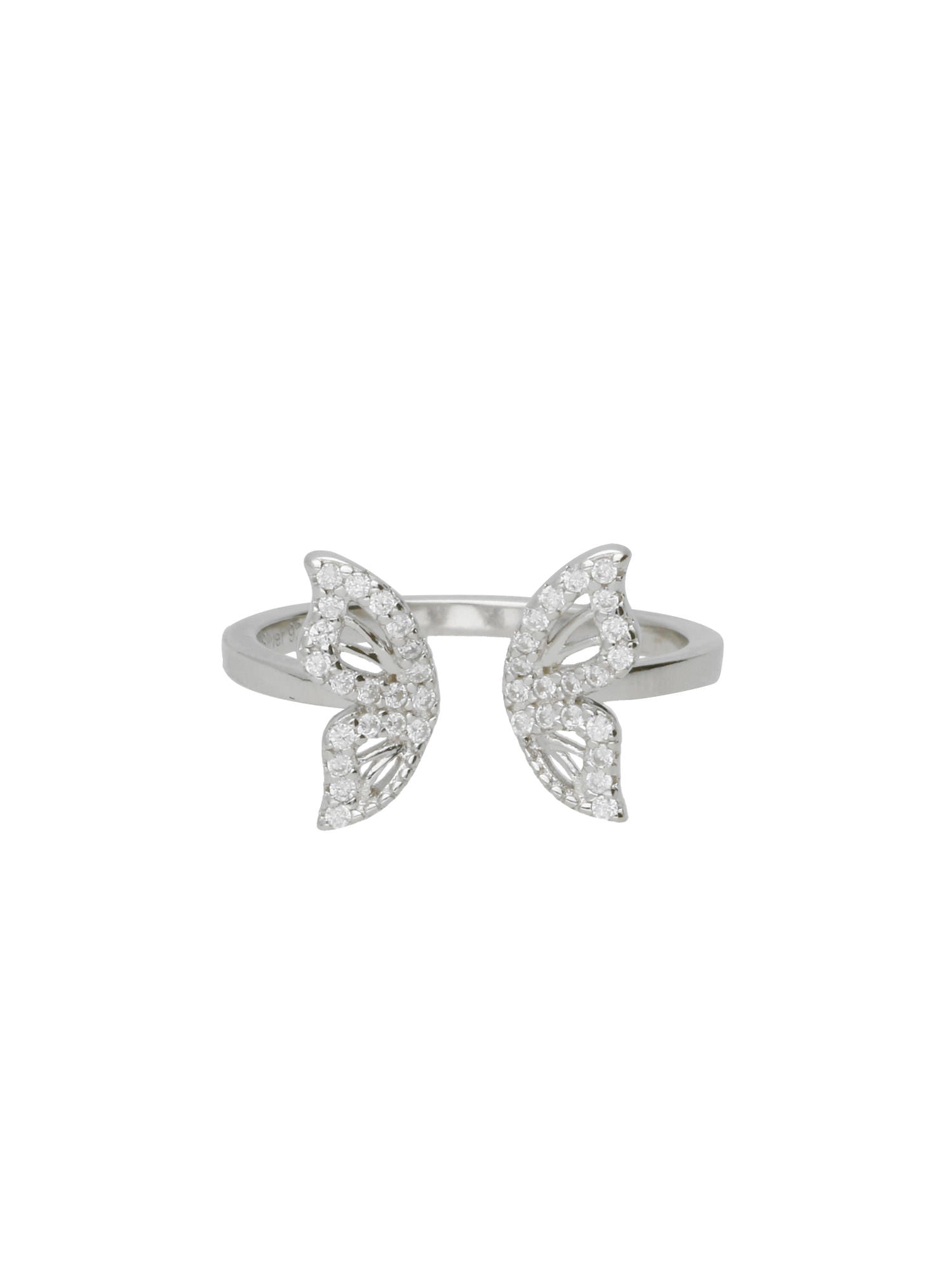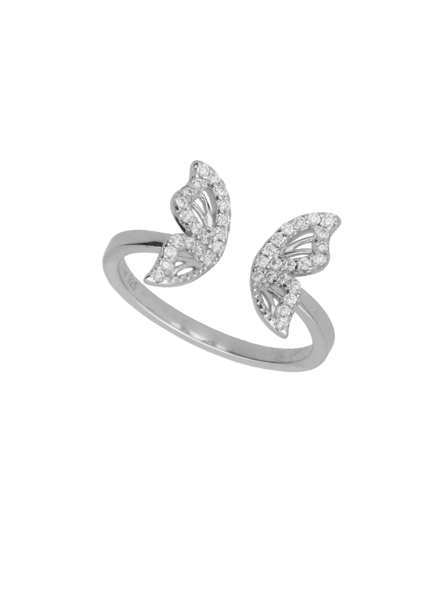 Anillo Delicado, Plata 925 bañada en rodio, Zirconia cúbica artificial, Claro, Mariposa, Artificial, Color plateado, 2.31 g