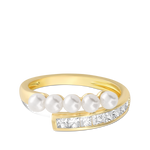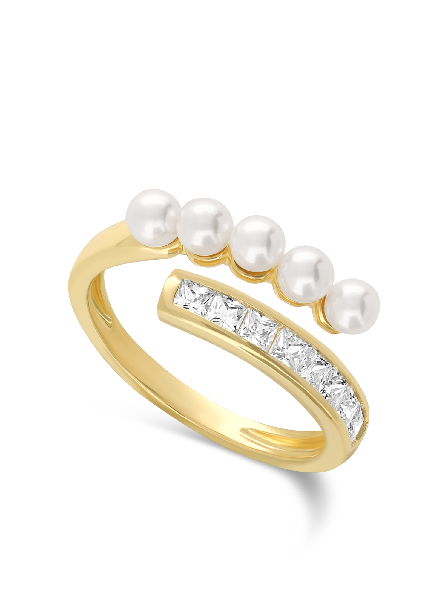 Anillo Delicado, Bañado en oro, Zirconia cúbica artificial, Perla Swarovski artificial