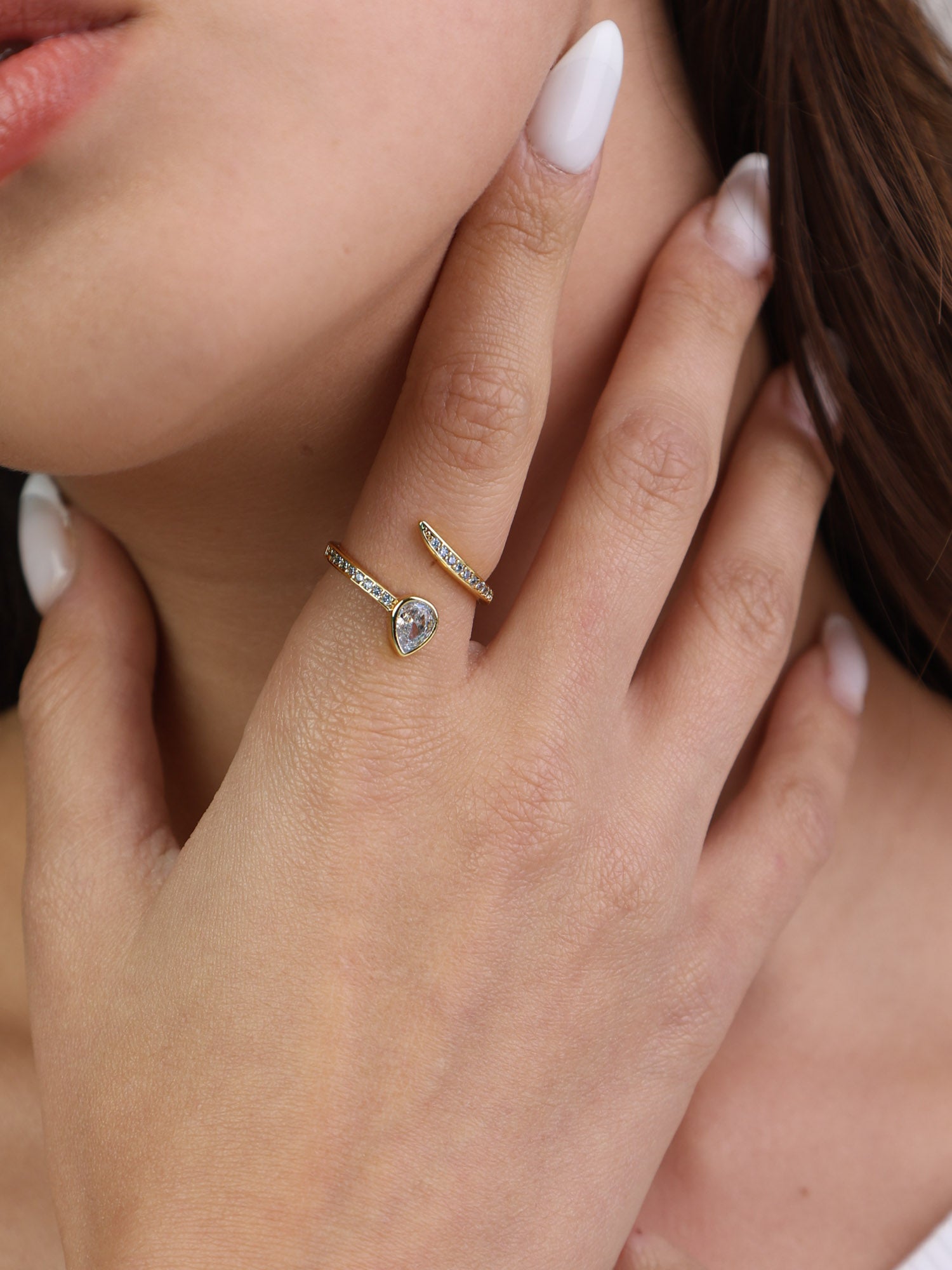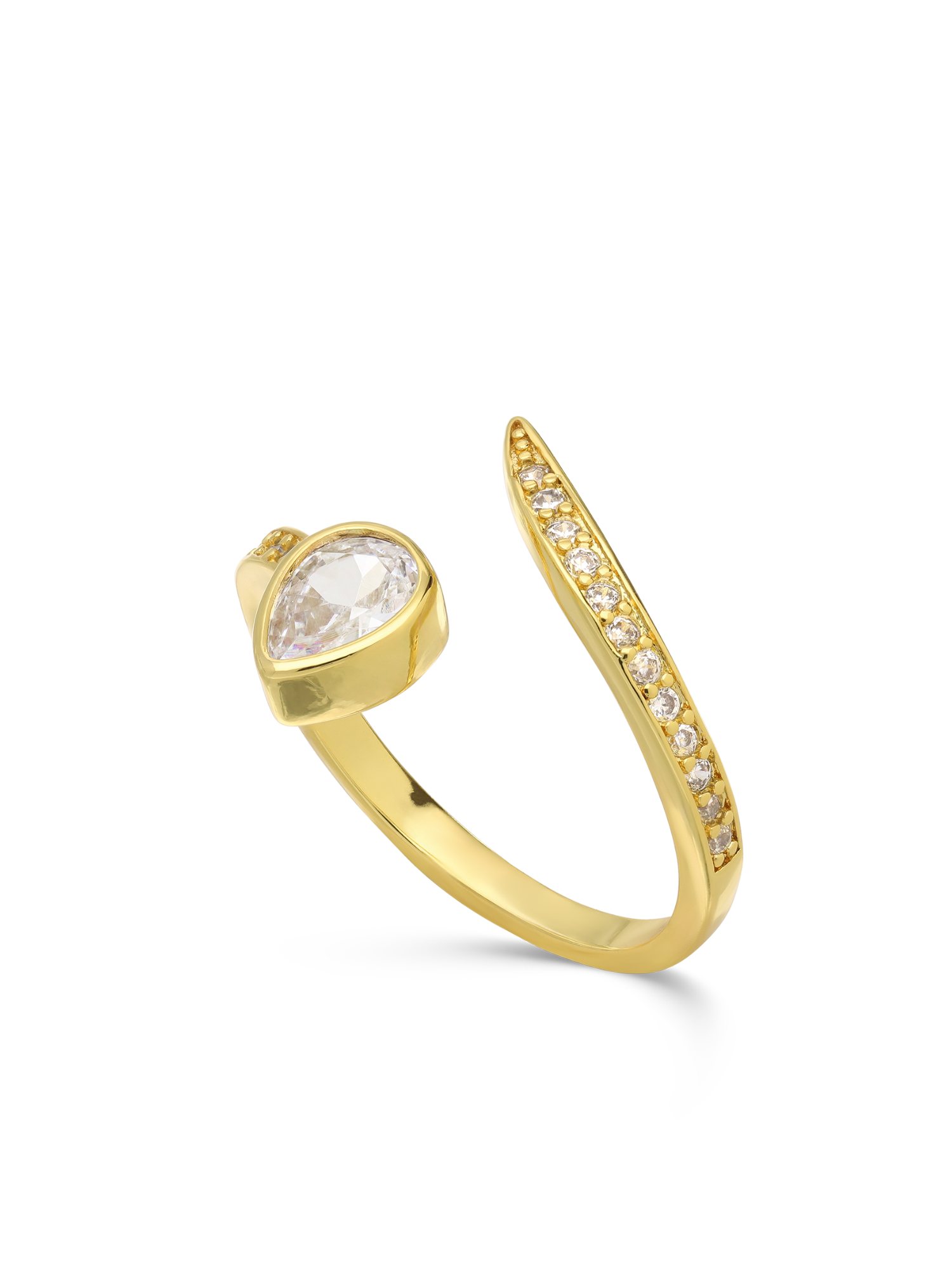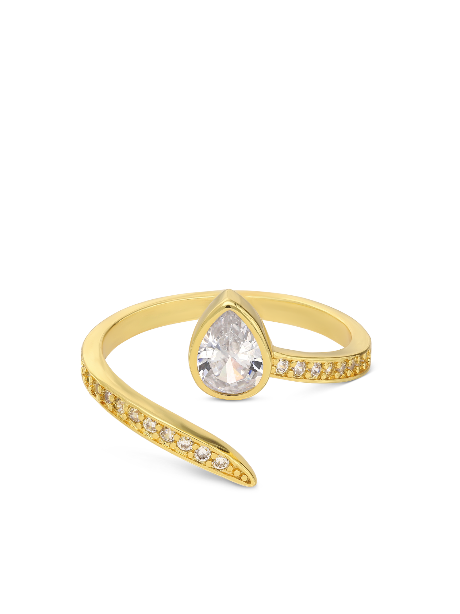 Anillo Delicado, Bañado en oro, Zirconia cúbica artificial, Claro, Lágrima, Artificial, Color dorado, 2.10 g