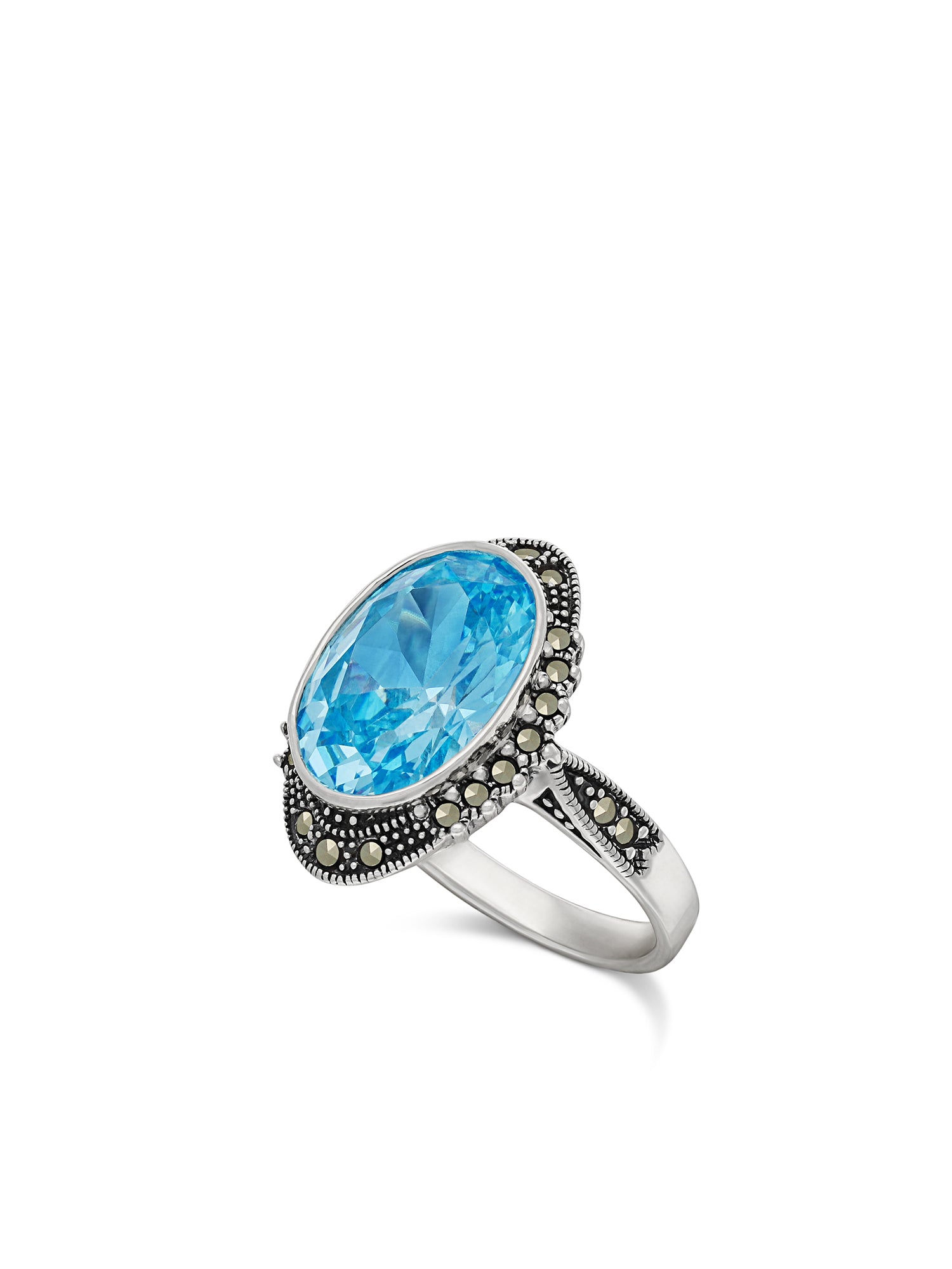 Anillo de Declaración, Plata 925 bañada en rodio, Zirconia cúbica artificial, Marcasita artificial