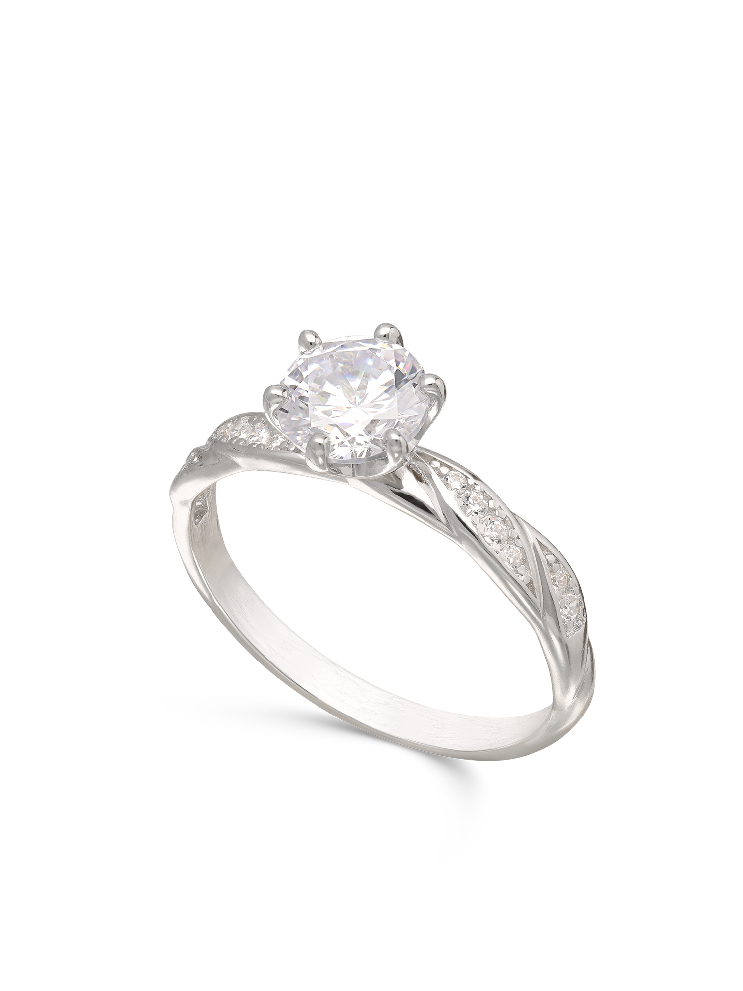 Anillo Delicado, Plata 925 bañada en rodio, Zirconia cúbica artificial