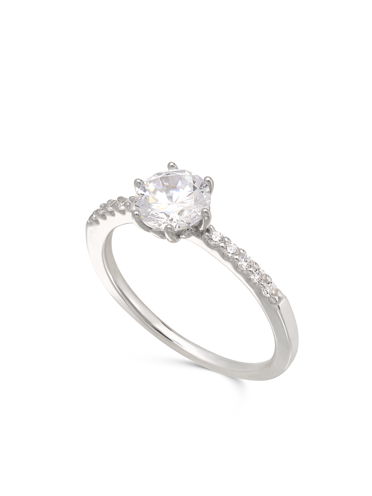 Anillo Delicado, Plata 925 bañada en rodio, Zirconia cúbica artificial