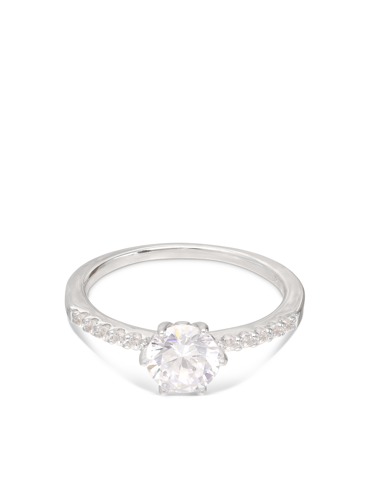 Anillo Delicado, Plata 925 bañada en rodio, Zirconia cúbica artificial, Claro, Forma no específica, Artificial, Color plateado, 3.13 g