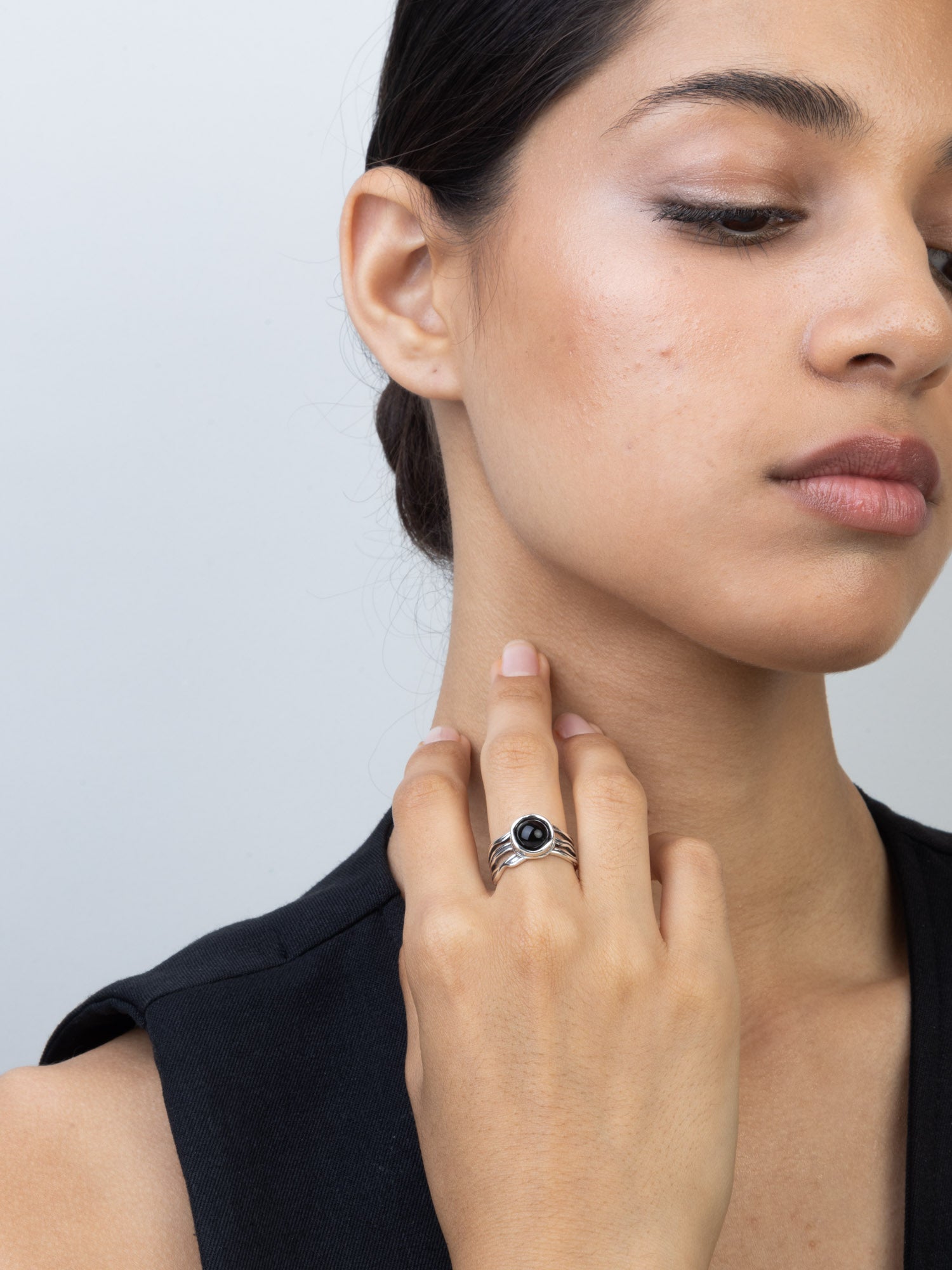 Anillo Delicado, Plata de Ley 925, Ónix artificial