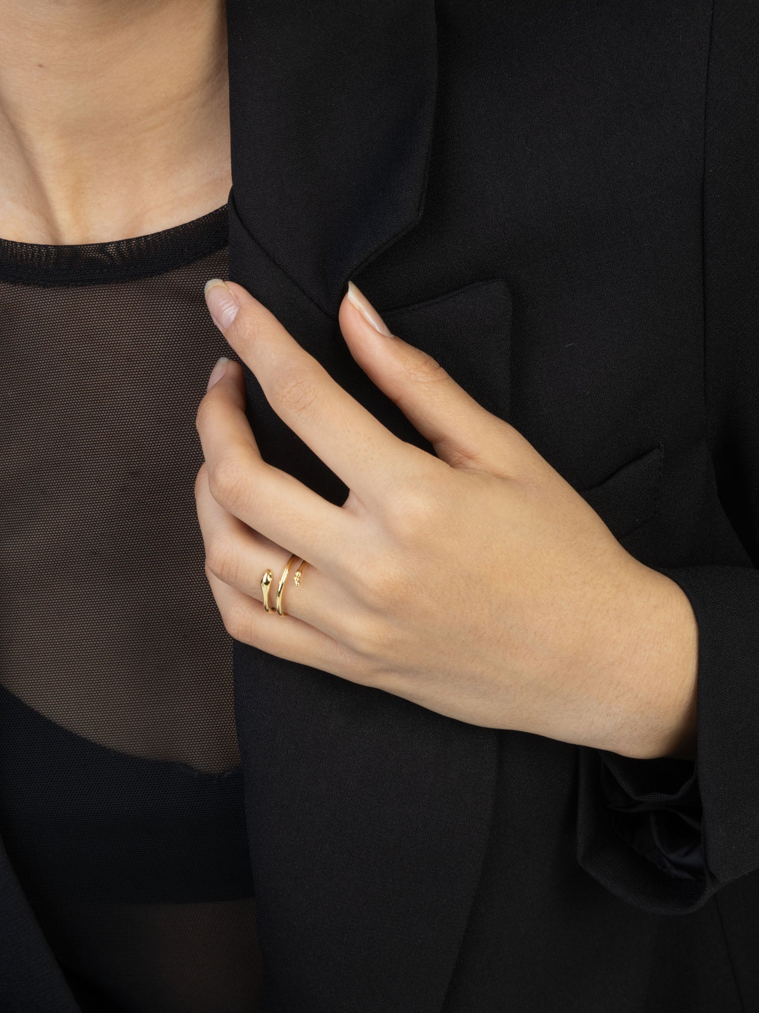 Anillo Delicado, Bañado en oro, Zirconia cúbica artificial, Negro, Animal, Artificial, Color dorado, 1.82 g