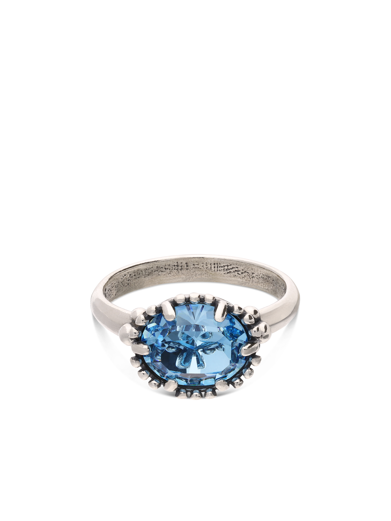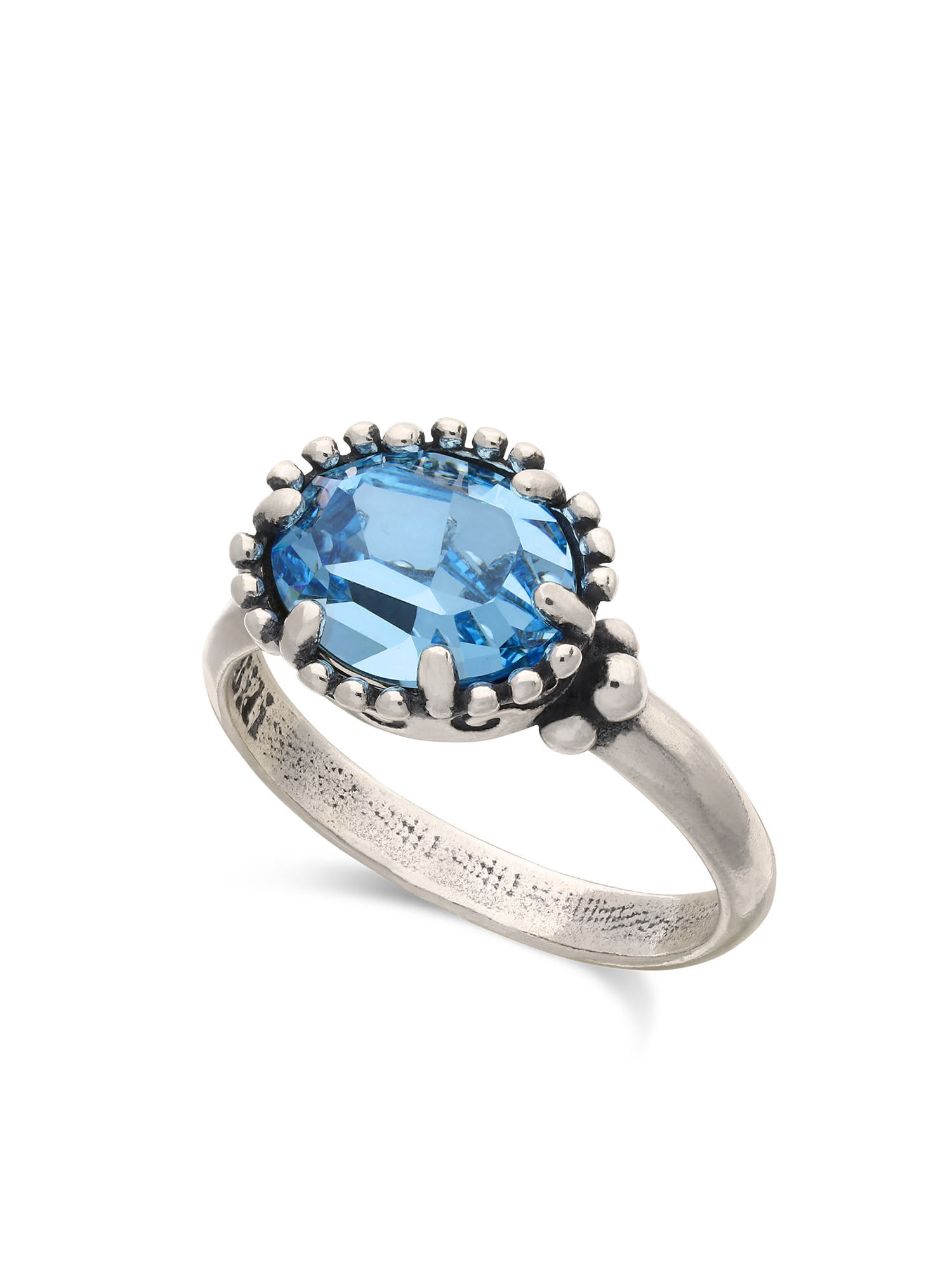 Anillo Delicado, Plata de Ley 925, Cristal Swarovski artificial, Celeste, Círculo, Artificial, Color plateado, 3.50 g