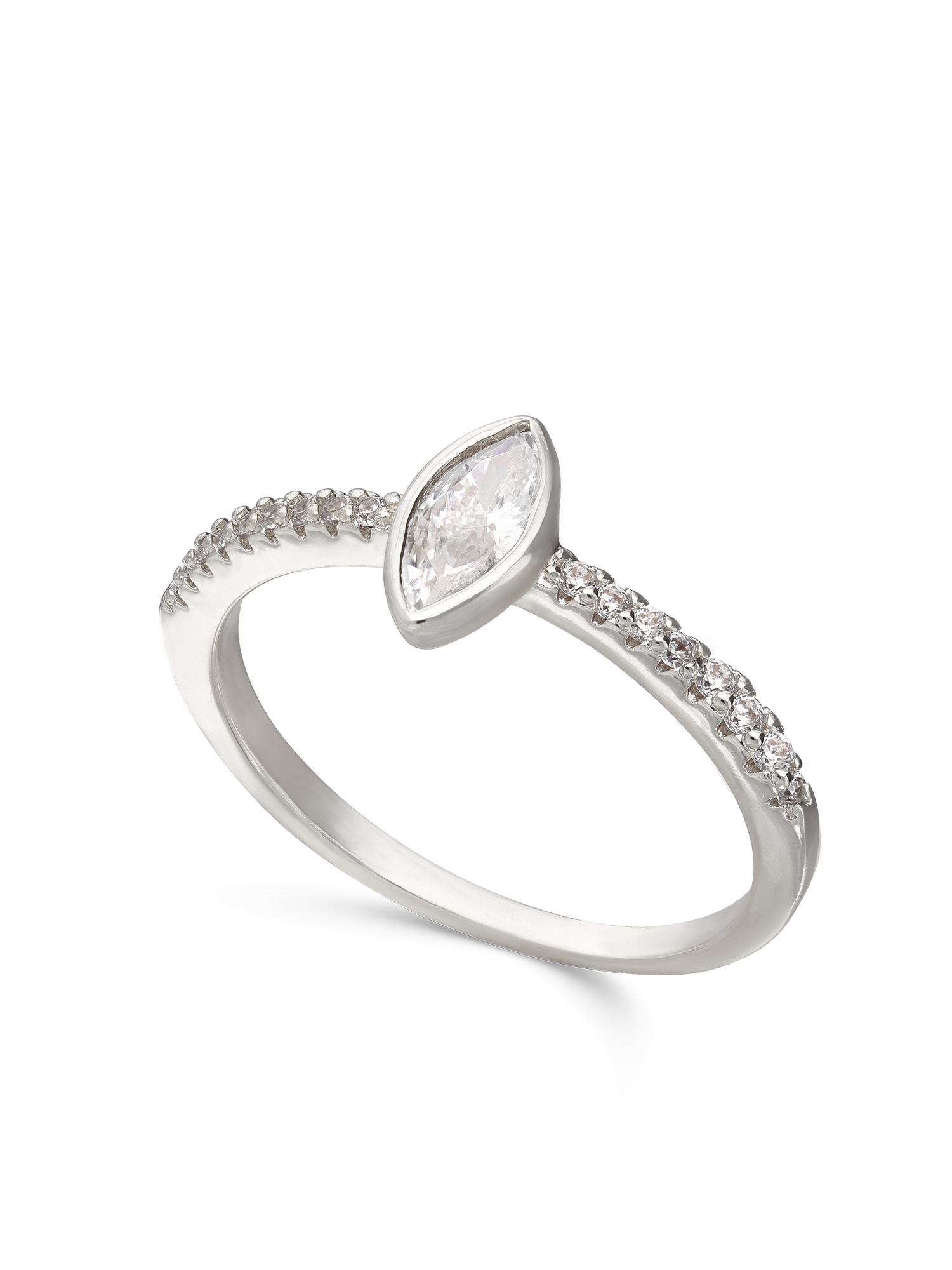 Anillo Delicado, Plata 925 bañada en rodio, Zirconia cúbica artificial