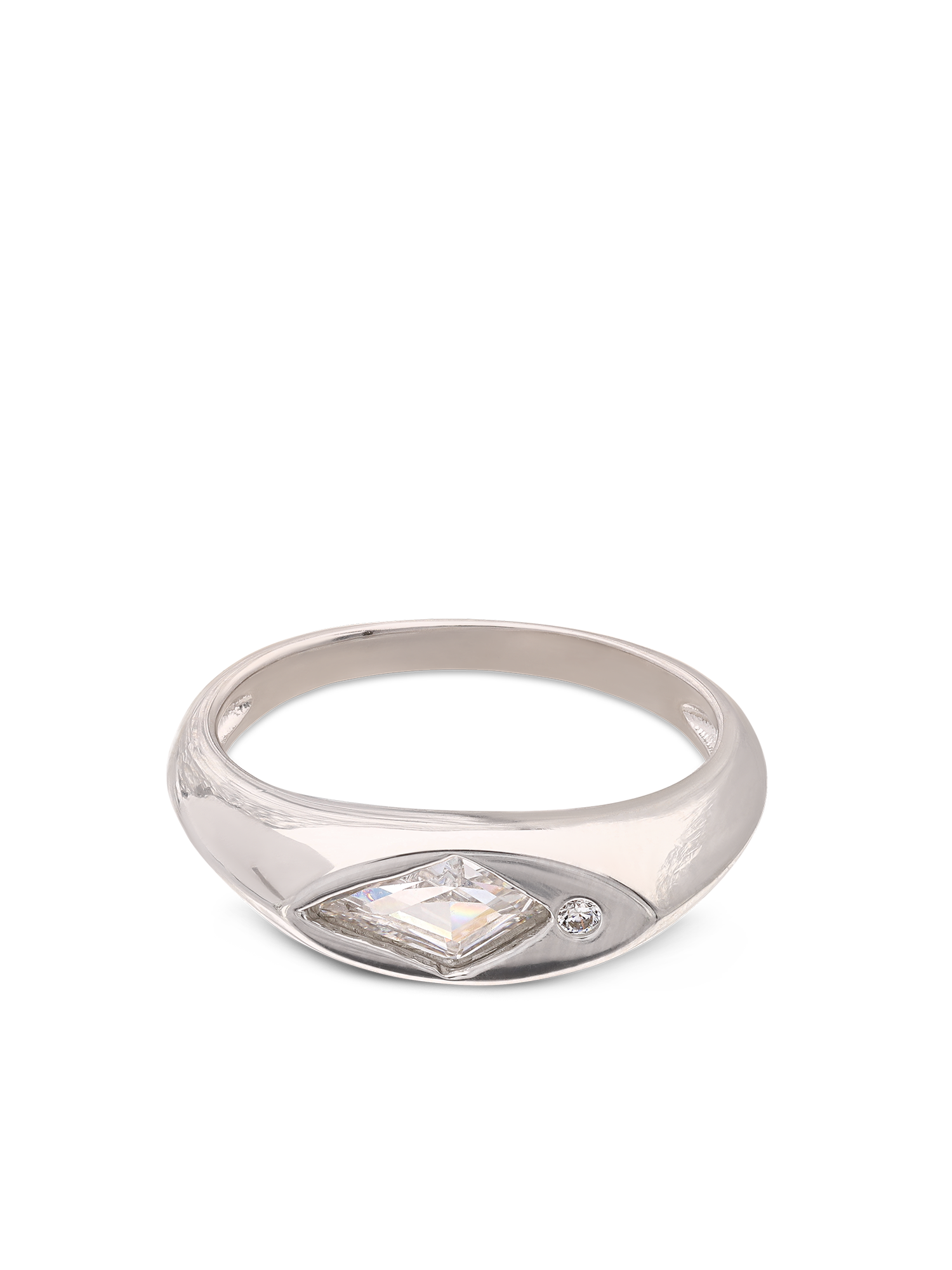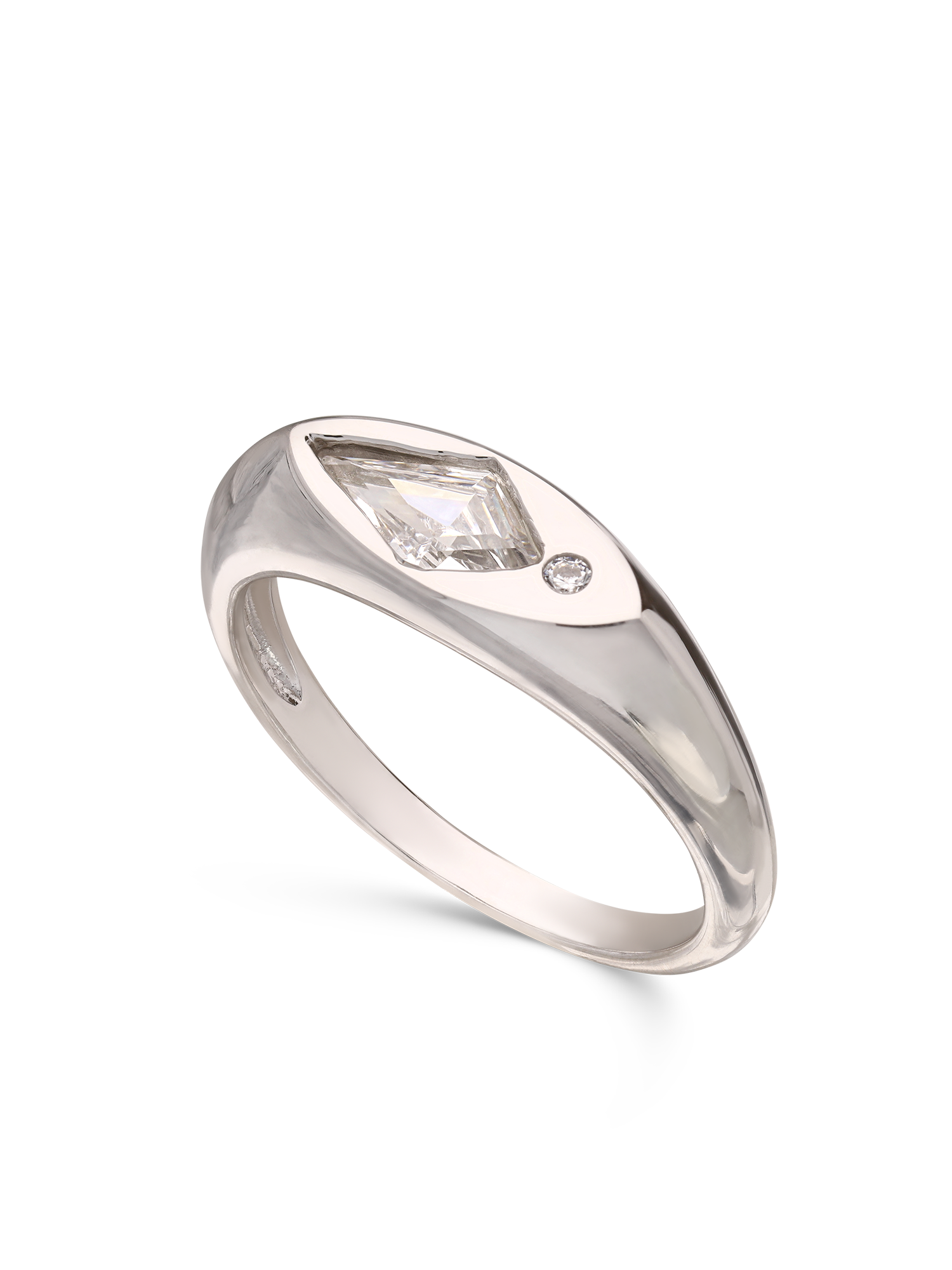 Anillo Delicado, Plata 925 bañada en rodio, Zirconia cúbica artificial, Claro, Cuadrado, Artificial, Color plateado, 3.12 g