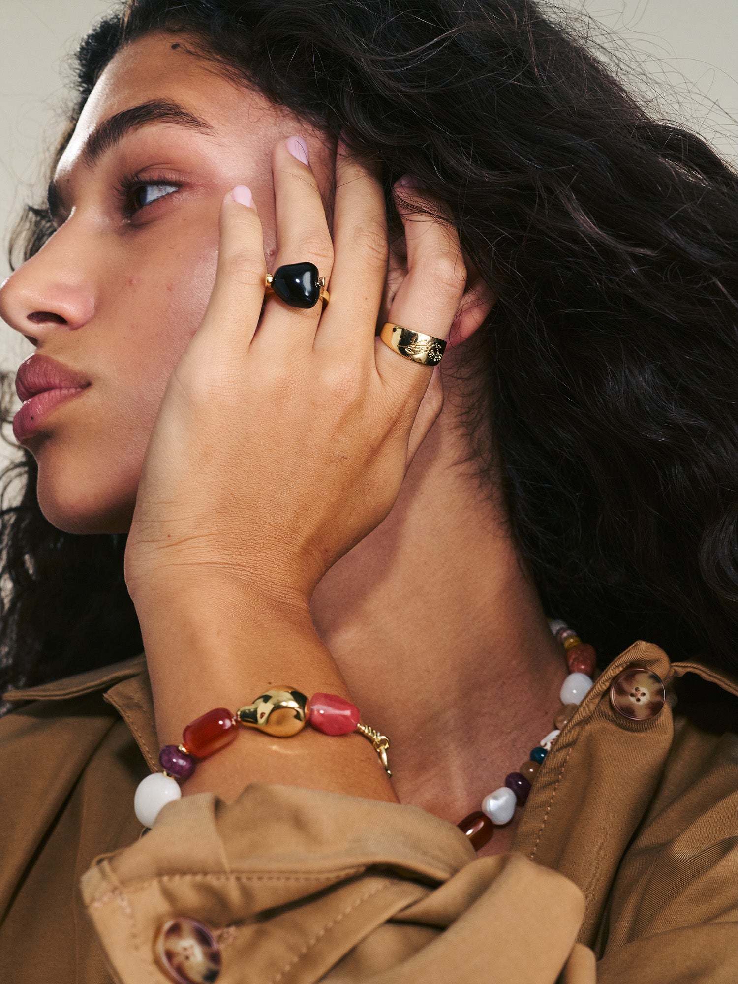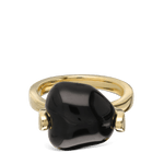 Anillo Delicado, Bañado en oro, Ónix artificial, Negro, Variedad de formas, Artificial, Color dorado, 6.11 g