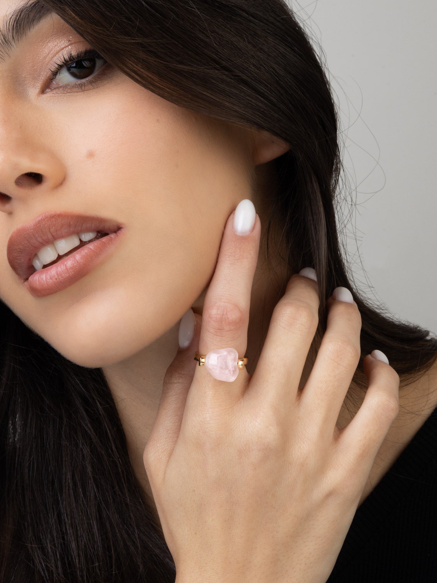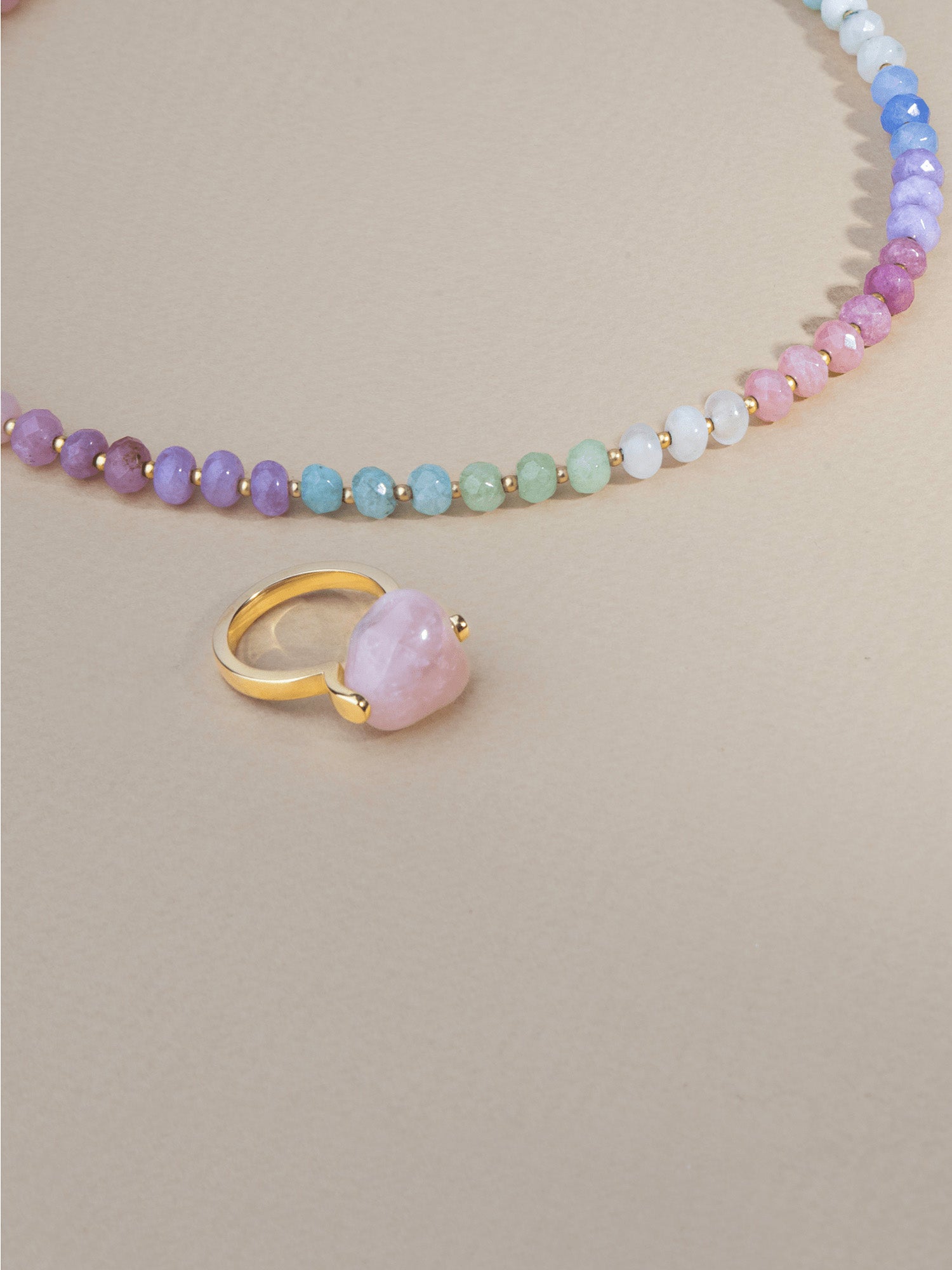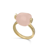 Anillo Delicado, Bañado en oro, Cuarzo rosa artificial