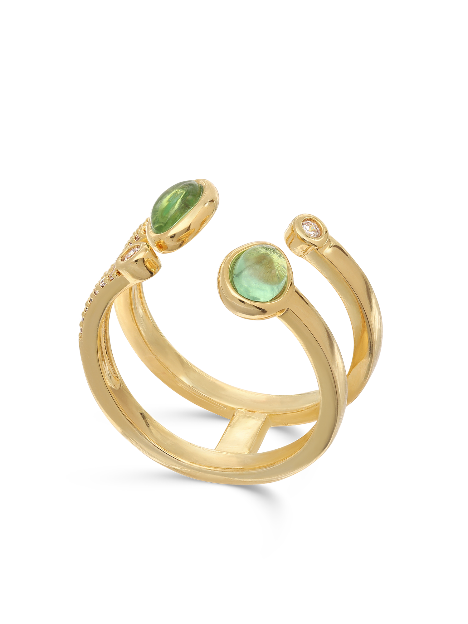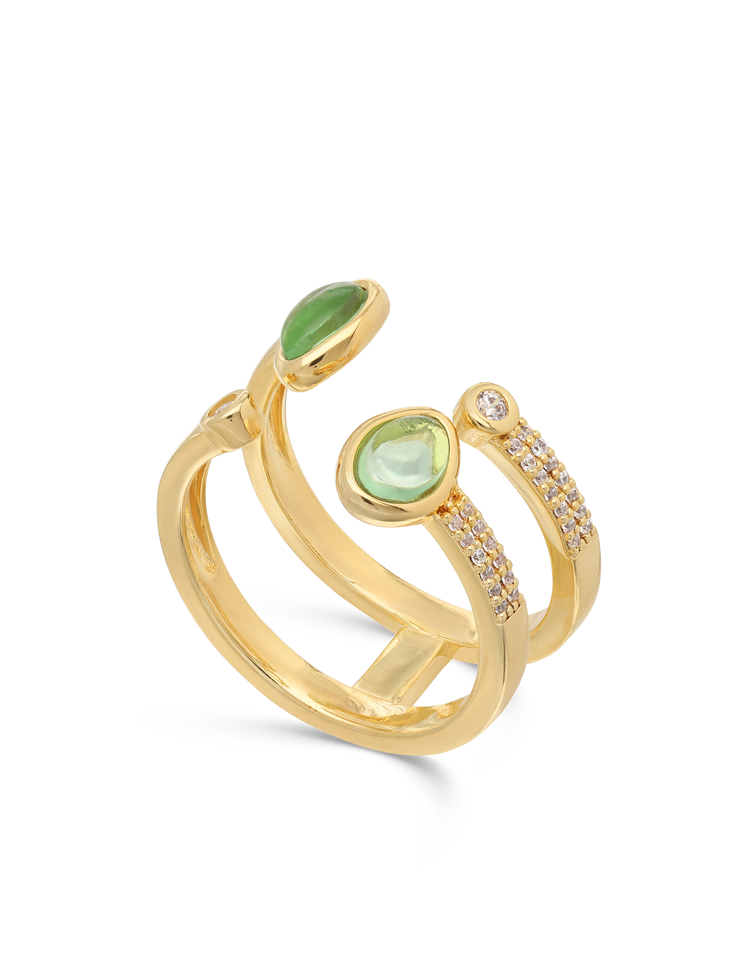 Anillo Delicado, Bañado en oro, Zirconia cúbica artificial, Vidrio de plomo, Verde, Claro, Guijarros, Artificial, Color dorado, 3.29 g