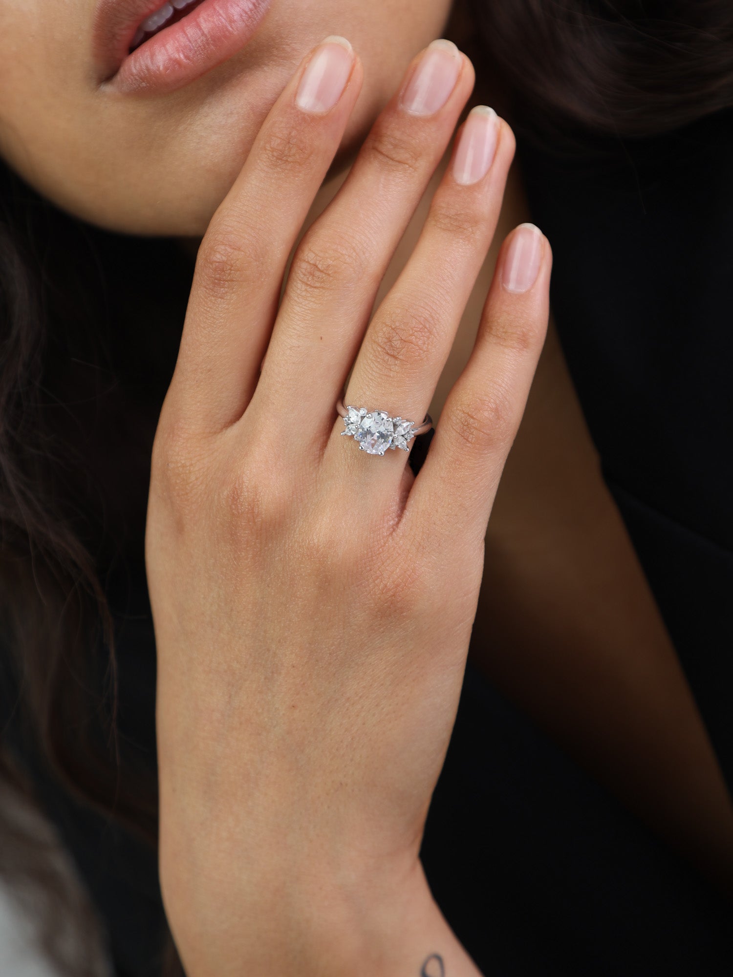 Anillo Delicado, Plata 925 bañada en rodio, Zirconia cúbica artificial